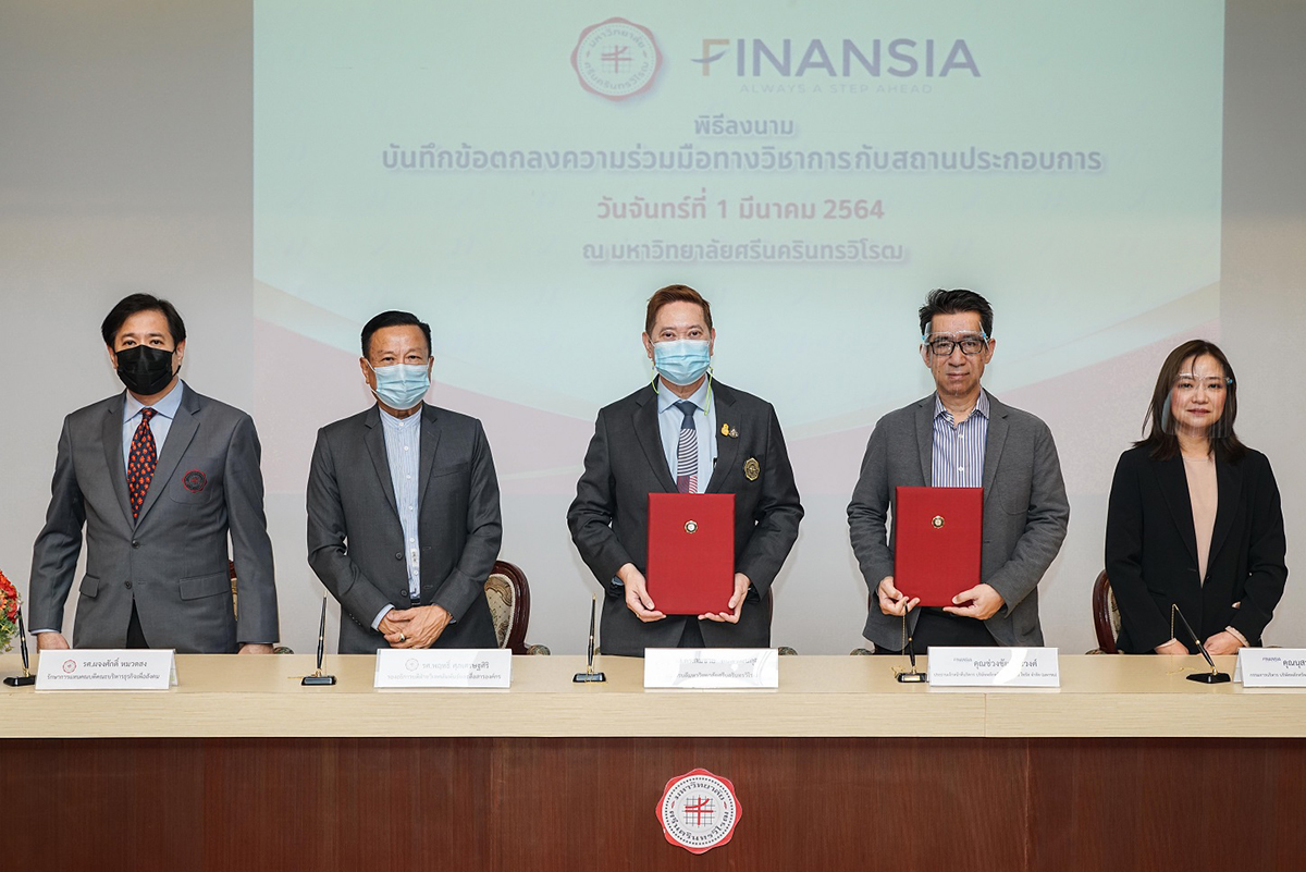 มิติหุ้น – บมจ.หลักทรัพย์ ฟินันเซีย ไซรัส โดย นายช่วงชัย นะวงศ์ (ที่ 2 จากขวา) ประธานเจ้าหน้าที่บริหาร พร้อมด้วย นางนุสรา รุ่นเจริญ (ขวา) กรรมการบริหาร ร่วมลงนามบันทึกข้อตกลงว่าด้วยการร่วมมือทางวิชาการ (MOU) โครงการฝึกงาน/สหกิจศึกษา (Cooperative Education) การส่งเสริมความร่วมมือในการผลิตบัณฑิต และการส่งเสริมความร่วมมือในการจัดกิจกรรมทางวิชาการ ร่วมกับมหาวิทยาลัยศรีนครินทรวิโรฒ โดยได้รับเกียรติจาก รองศาสตราจารย์ ดร.สมชาย สันติวัฒนกุล (กลาง) อธิการบดีมหาวิทยาลัยศรีนครินทรวิโรฒ ร่วมด้วย รองศาสตราจารย์พฤทธิ์ ศุภเศรษฐศิริ (ที่ 2 จากซ้าย) รองอธิการบดีฝ่ายวิเทศสัมพันธ์และสื่อสารองค์กร และ รองศาสตราจารย์ผจงศักดิ์ หมวดสง (ซ้าย) รักษาการแทนรองคณบดีคณะบริหารธุรกิจเพื่อสังคม คณะบริหารธุรกิจเพื่อสังคม ร่วมลงนามในครั้งนี้ เพื่อร่วมมือในการส่งเสริมความร่วมมือในการผลิตบัณฑิต และการส่งเสริมความร่วมมือในการจัดกิจกรรมทางวิชาการ เมื่อวันที่ 1 มี.ค. 64 ณ ห้องปฐมบริบท อาคารประสานมิตร มหาวิทยาลัยศรีนครินทรวิโรฒ