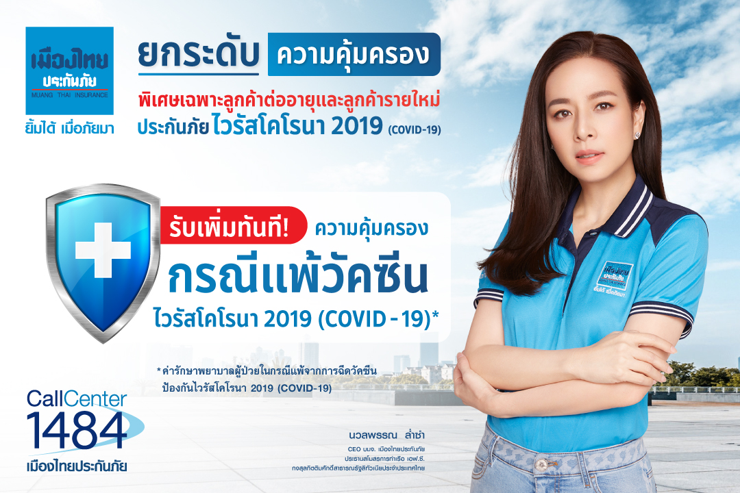 มิติหุ้น – เมืองไทยประกันภัย ยกระดับความคุ้มครองยกกำลัง2 พิเศษสำหรับลูกค้าทุกรายที่ต่ออายุความคุ้มครอง และซื้อกรมธรรม์ประกันภัยโรคติดเชื้อไวรัสโคโรนา 2019 (COVID-19) แผนอุ่นใจ รับฟรีความคุ้มครองกรณีแพ้วัคซีนโควิด-19 ทันที ในราคาเบี้ยประกันภัยเท่าเดิม สำหรับการรักษาผู้ป่วยในกรณีที่แพ้วัคซีน ระยะเวลาคุ้มครอง 1 ปี สำหรับลูกค้าต่ออายุรับสิทธิ์นี้ก่อนวันสิ้นสุดกรมธรรม์เดิม และลูกค้าที่ซื้อประกันภัยโควิด-19 รายใหม่เริ่มตั้งแต่ 2 มีนาคม 2564 เป็นต้นไป