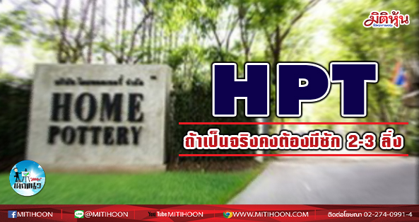 HPT ผู้ผลิตสินค้าเครื่องเซรามิก ที่เก็บตัวเงียบมานาน เหมือนว่าปี 64 นี้ส้มหล่นอย่างจริงจัง เพราะแหล่งข่าววงการค้าปลีกมองว่าคุณภาพของสินค้าและราคาเข้าตาห้างยักษ์ใหญ่ในสหรัฐเข้าไปแล้ว และอาจมีการจรดปากกาสั่งสินค้าในระยะยาว ซึ่งหากเป็นเช่นนั้นจริงสิ่งที่ HPT ทำให้ได้เพียงอย่างเดียวคือผลิตส่งมะกันให้ทันก็แล้วกัน เพราะมันจะใหญ่เป็นคนละไซส์กับที่ขายในประเทศไทยเป็นร้อยเท่า
