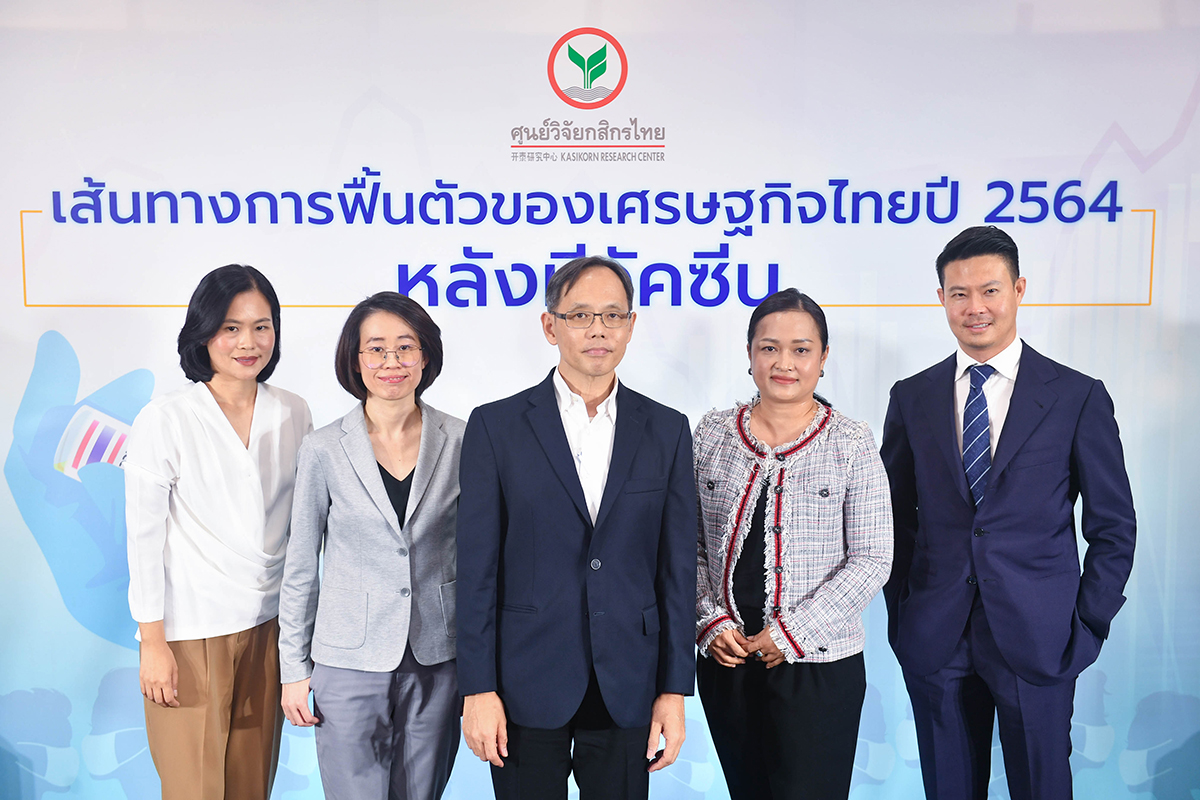 มิติหุ้น – ดร.เชาว์ เก่งชน (กลาง) ประธานกรรมการบริหาร พร้อมด้วย นางสาวธัญญลักษณ์ วัชระชัยสุรพล (ที่ 2 จากขวา) รองกรรมการผู้จัดการ ดร.ศิวัสน์ เหลืองสมบูรณ์ (ขวา) รองกรรมการผู้จัดการ นางสาวเกวลิน หวังพิชญสุข (ที่ 2 จากซ้าย) ผู้ช่วยกรรมการผู้จัดการ นางสาวณัฐพร ตรีรัตน์ศิริกุล (ซ้าย) ผู้ช่วยกรรมการผู้จัดการ บริษัท ศูนย์วิจัยกสิกรไทย จำกัด เผยมุมมองเศรษฐกิจในงานแถลงข่