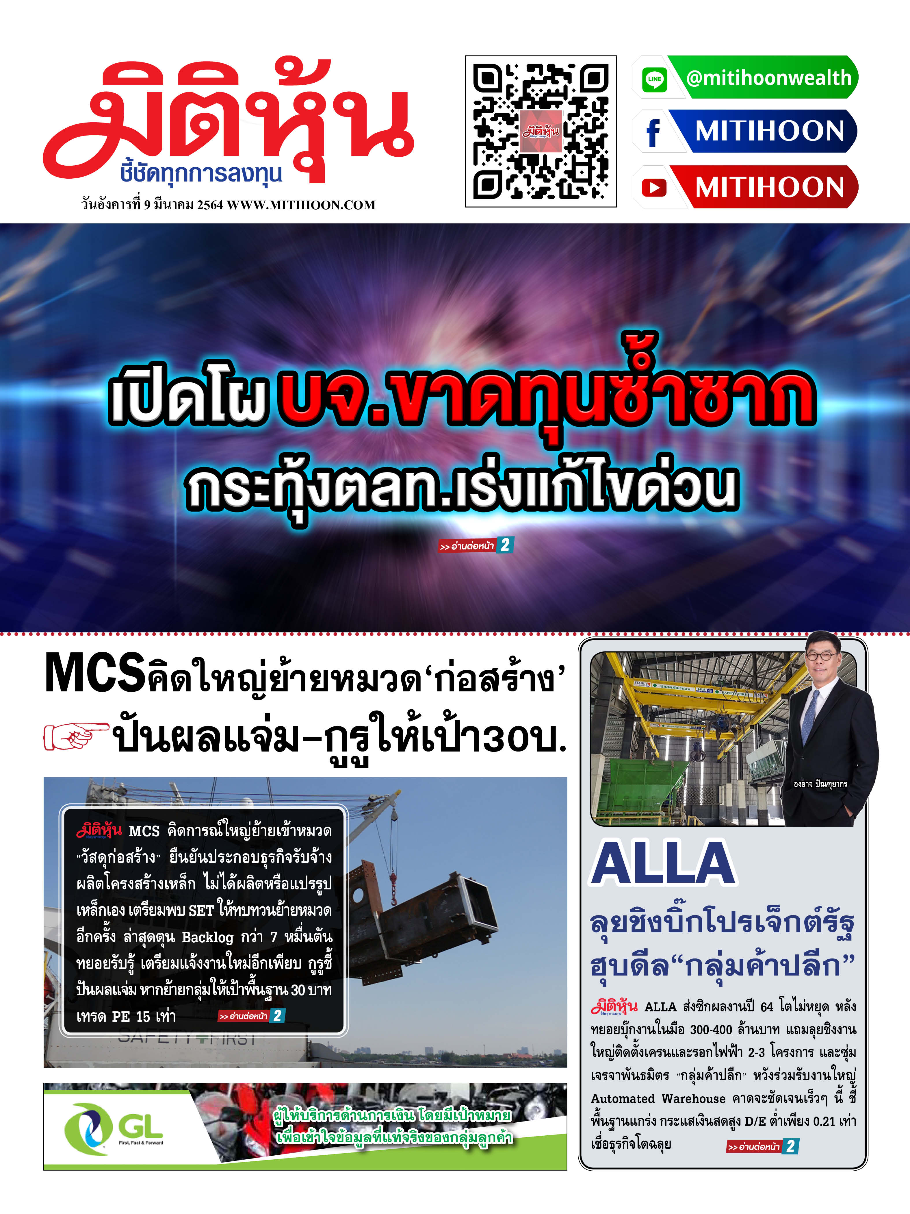 นสพ.มิติหุ้น “ชี้ชัดทุกการลงทุน” ฉบับวันที่ 9 มีนาคม 2564