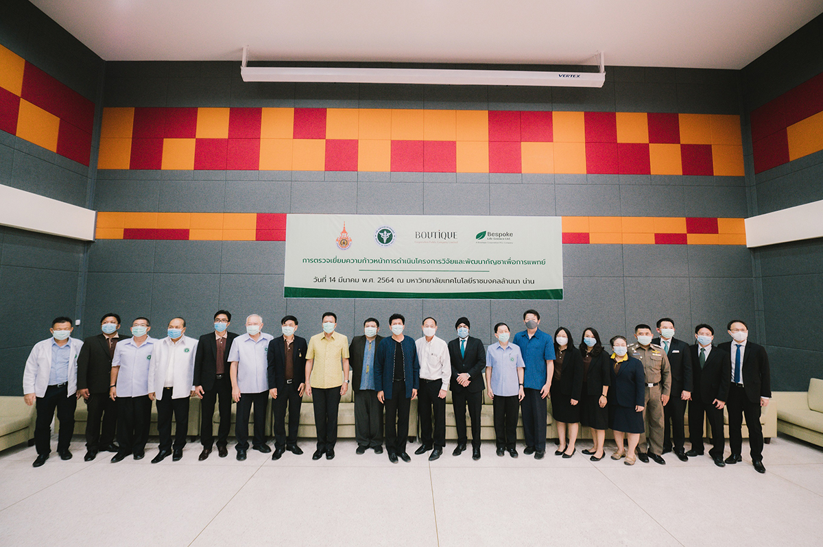 มิติหุ้น – บริษัท บูทิค คอร์ปอเรชั่น จำกัด (มหาชน) (“บูทิค”) โดย บีสโปค ไลฟ์ ไซเอนซ์ จำกัด (“บีสโปค”) ซึ่งเป็นบริษัทร่วมลงทุนในกลุ่มบูทิค และมหาวิทยาลัยเทคโนโลยีราชมงคลล้านนา (RMUTL) ร่วมต้อนรับคณะแขกผู้มีเกียรติ นำโดย รัฐมนตรีช่วยว่าการกระทรวงสาธารณสุข ดร. สาธิต ปิตุเตชะ และผู้ว่าราชการจังหวัดน่าน นายนิพันธ์ บุญหลวง ยังศูนย์วิจัยและพัฒนากัญชาและกัญชงในจังหวัดน่าน ซึ่งเป็นส่วนหนึ่งของตารางเยี่ยมชมมหาวิทยาลัยของ รมช. และคณะ การเปิดตัวศูนย์วิจัยดังกล่าวต่อยอดจากการลงนามบันทึกความเข้าใจระหว่าง บีสโปค และ RMUTL ในเดือนตุลาคม 2563 สำหรับการวิจัยและพัฒนากัญชาและกัญชงในจังหวัดน่าน