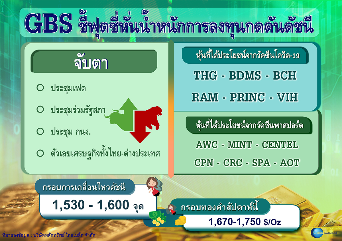 มิติหุ้น – บล. โกลเบล็ก (GBS) ประเมินหุ้นไทยแกว่งตัวผันผวนจากแรงกดดัน ดัชนี FTSE Rebalance ลดน้ำหนักการลงทุนในตลาดหุ้นมีผล 19 มี.ค.นี้ พร้อมแนะจับตาการประชุมเฟด- การประชุมร่วมรัฐสภา – กนง.- การรายงานตัวเลขเศรษฐกิจทั้งในประเทศและต่างประเทศ จึงให้กรอบดัชนี 1,530 – 1,600 จุด พร้อมแนะกลยุทธ์ลงทุนในหุ้นได้รับประโยชน์จากวัคซีนโควิด-19 และหุ้นที่ได้ประโยชน์จากวัคซีนพาสปอร์ต