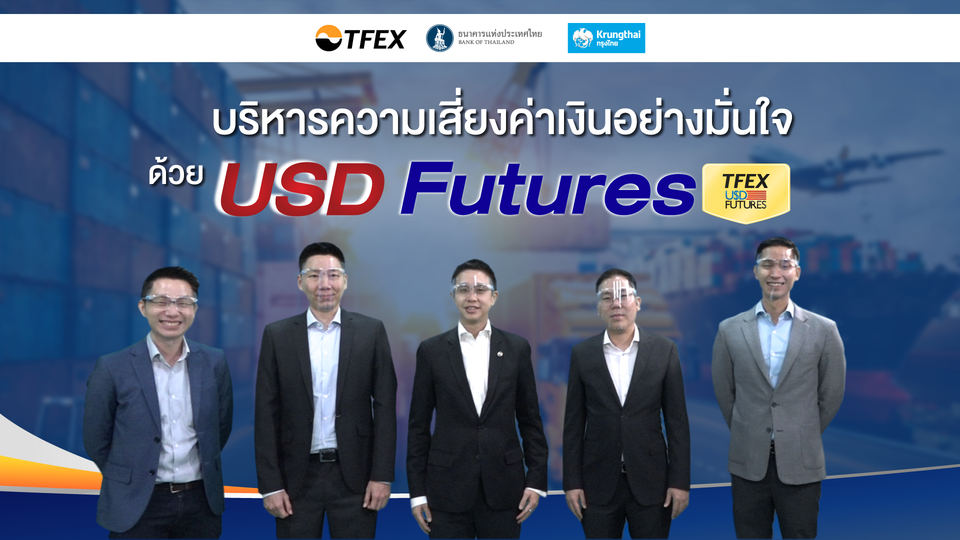 ตลาดสัญญาซื้อขายล่วงหน้า (TFEX) ร่วมกับธนาคารแห่งประเทศไทย และธนาคารกรุงไทย จัดสัมมนาออนไลน์ “บริหารความเสี่ยงค่าเงินอย่างมั่นใจด้วย USD Futures” โดยมี สุโชติ เปี่ยมชล ผู้อำนวยการ ฝ่ายตลาดการเงิน ธนาคารแห่งประเทศไทย ดร. มานะ นิมิตรวานิช ผู้อำนวยการ ฝ่าย Business Risk and Macro Research ธนาคารกรุงไทย วรงค์ วงศ์สินอุดม ผู้อำนวยการ ฝ่าย Product Solutions and Markets Innovation ธนาคารกรุงไทย และ ดร. จักรพันธ์ ติระศิริชัย ผู้อำนวยการอาวุโส ฝ่ายพัฒนาผลิตภัณฑ์-อนุพันธ์ TFEX ร่วมให้ข้อมูลแนวโน้มเศรษฐกิจ ตลาดการเงินโลก แนวทางในการบริหารความเสี่ยงจากค่าเงินที่มีประสิทธิภาพและสามารถเข้าถึงได้ ผ่านการทำธุรกรรมซื้อหรือขาย USD Futures ใน TFEX และบริการแลกดอลลาร์รายวันกับธนาคารกรุงไทยผ่านเทคโนโลยี Blockchain เมื่อ 17 มี.ค. 2564 ผู้ประกอบการและผู้สนใจสามารถรับชมสัมมนาย้อนหลังได้ที่ www.TFEX.co.th