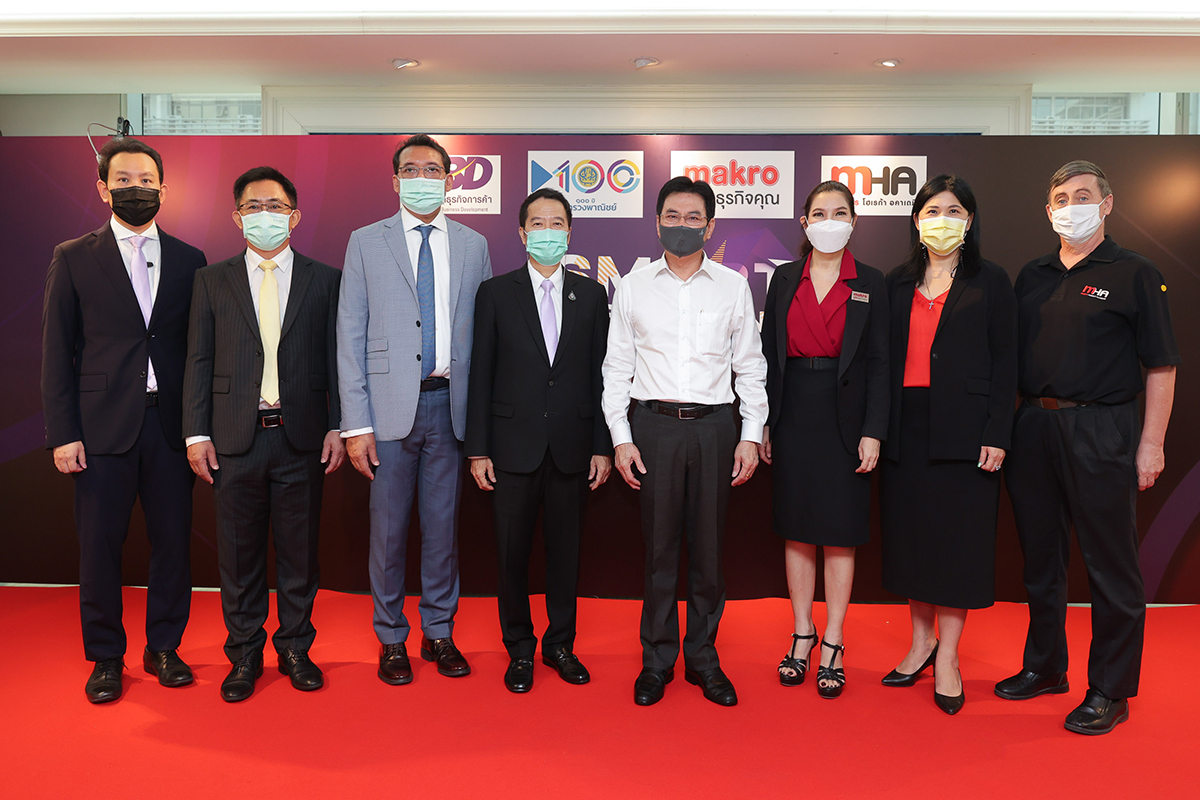 มิติหุ้น – บริษัท สยามแม็คโคร จำกัด (มหาชน) นำโดย นางศิริพร เดชสิงห์ รองประธานเจ้าหน้าที่บริหาร สายงานการสื่อสารองค์กร (ที่ 3 จากขวา) และนางซันนี่ ซิดิค ผู้บริหารสูงสุด สายงานบริหารสินค้า (ที่ 2 จากขวา) ร่วมกับ กรมพัฒนาธุรกิจการค้า กระทรวงพาณิชย์ โดย นายทศพล ทังสบุตร อธิบดีกรมพัฒนาธุรกิจการค้า (ที่ 3 จากซ้าย) จัดอบรมหลักสูตรเชิงปฏิบัติการ “การจัดการร้านอาหาร ทางรอดในยุค New Normal หรือ Smart Restaurant Plus” เพื่อเสริมความแกร่งให้กับเจ้