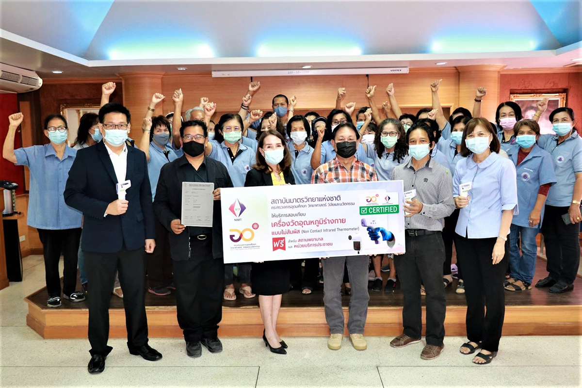 สถาบันมาตรวิทยาแห่งชาติได้ประสานความร่วมมือไปยังเทศบาลนครรังสิต และ เทศบาลเมืองปทุมธานี จ.ปทุมธานี เพื่อส่งทีมผู้เชี่ยวชาญสอบเทียบเครื่องวัดอุณหภูมิร่างกายแบบไม่สัมผัสที่ใช้คัดกรองตามหน่วยงานต่างๆในพื้นที่ จ.ปทุมธานี เพื่อเป็นการสร้างมาตรฐานให้แก่การคัดกรองอย่างมีประสิทธิภาพ โดยกิจกรรมดังกล่าวเป็น 1 กิจกรรมใต้โครงการ “บริการสอบเทียบเครื่องวัดอุณหภูมิร่างกายแบบไม่สัมผัส (Non Contact Infrared Thermometer) สำหรับสถานพยาบาลและหน่วยบริการประชาชนโดยไม่มีค่าใช้จ่าย”