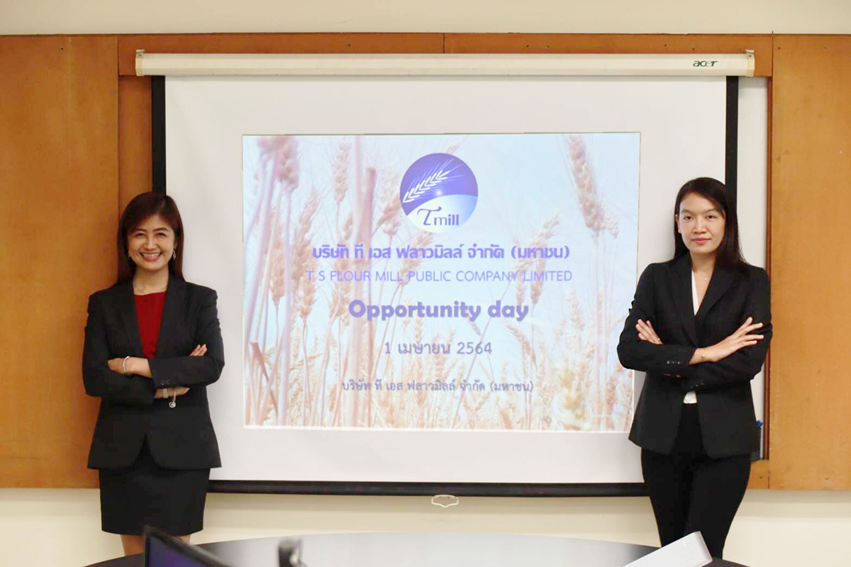 มิติหุ้น – นางแววตา กุลโชตธาดา รองผู้อำนวยการฝ่ายการเงินและบัญชี (ซ้าย) และนางสาวสุภาพ นิ่มพลับ ผู้จัดการฝ่ายการเงินและบัญชี (ขวา) บริษัท ที เอส ฟลาวมิลล์ จํากัด (มหาชน) หรือ TMILL โรงงานโม่แป้งสาลีรายใหญ่และมีเทคโนโลยีการผลิตที่ทันสมัยที่สุดในประเทศ นำเสนอข้อมูลผลประกอบการปี 2563 ผ่านช่องทางออนไลน์ ในงานบริษัทจดทะเบียนพบนักลงทุน (Opportunity Day) โดยบริษัทฯมีกําไรสุทธิ 105.52 ล้านบาท เพิ่มขึ้น4.24 ล้านบาท คิดเป็น4.2% เมื่อเปรียบเทียบกับปี2562 ที่มีผลกําไรสุทธิ 101.28 ล้านบาท และมีการใช้อัตรากําลังการผลิตเฉลี่ยในปี2563อยู่ที่75.39%เพิ่มขึ้น1.87%เมื่อเปรียบเทียบกับปีก่อนควบคู่กับการบริหารจัดการต้นทุนได้อย่างมีประสิทธิภาพ ส่งผลให้กำไรสุทธิของบริษัทฯ ในปีที่ผ่านมาเติบโตอย่างแข็งแกร่ง พร้อมกันนี้ในปี 2563 ที่ประชุมคณะกรรมการบริษัทฯ อนุมัติการจัดสรรกำไรจากผลการดำเนินงานของบริษัทประจำปี2563และการจ่ายเงินปันผลจากกำไรสุทธิประจำปี2563ในอัตราหุ้นละ 0.12 บาท ขณะที่ บริษัทฯ ได้มีการจ่ายเงินปันผลระหว่างกาลจากกำไรสุทธิงวด6เดือนแรกของปี2563ในอัตราหุ้นละ0.08บาท รวมเงินปันผลที่จ่ายทั้ง2คร้ัง ประจำปี2563เท่ากับ0.20บาทต่อหุ้น เป็นเงิน79,732,812.20บาท