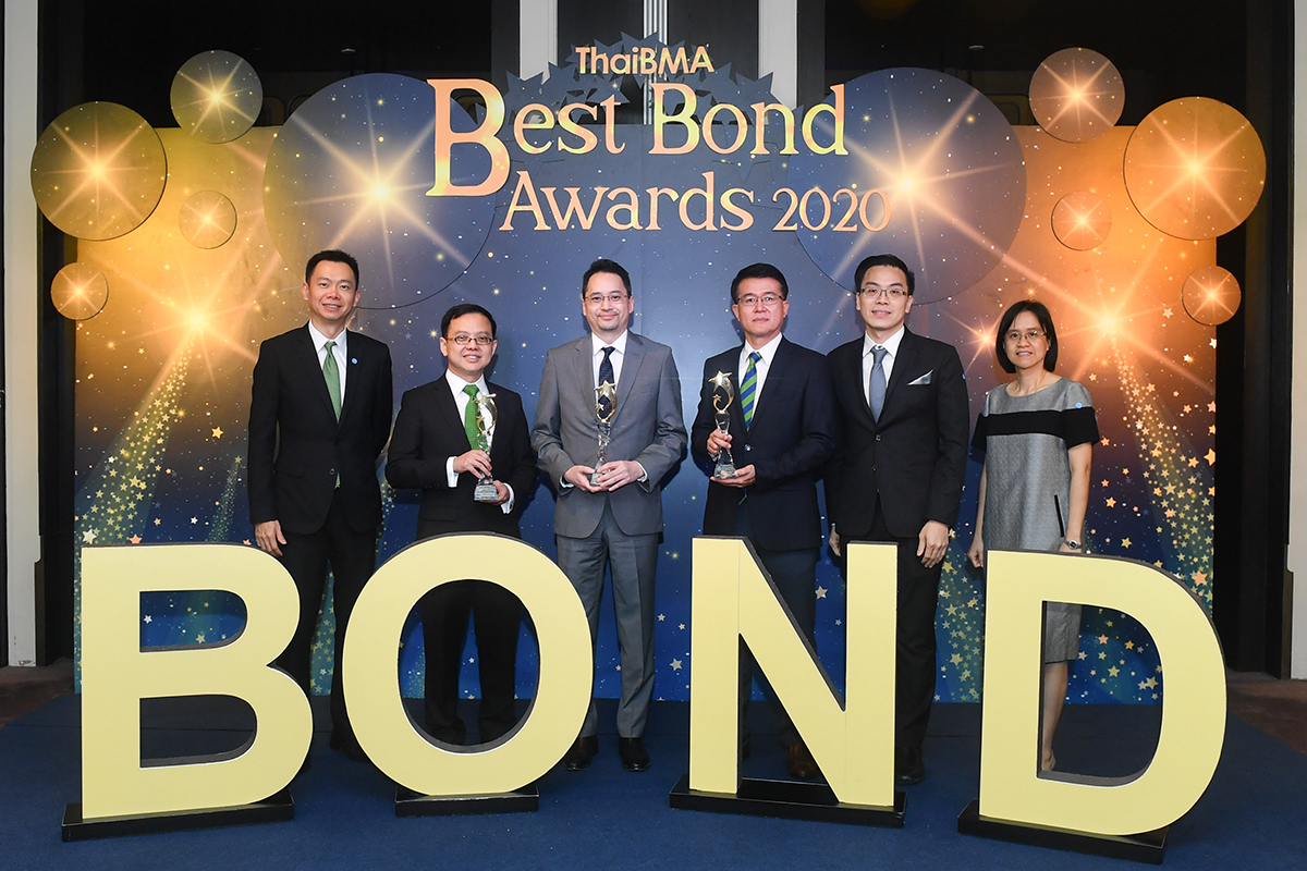 นายธิติ ตันติกุลานันท์ (ที่ 3 จากซ้าย) ผู้บริหารสายงานธุรกิจตลาดทุน และนายจงรัก รัตนเพียร (ที่ 3 จากขวา) รองกรรมการผู้จัดการอาวุโส ธนาคารกสิกรไทย เป็นผู้แทนธนาคารรับมอบ 3 รางวัลใหญ่ ได้แก่ รางวัลยอดเยี่ยมสำหรับสถาบันการเงินที่มีความเป็นเลิศในการทำธุรกรรมตราสารหนี้ทั้งในตลาดแรกตลาดรองและบทบาทที่โดดเด่นในการพัฒนาตลาดตราสารหนี้ไทย (Best Bond House Award) รางวัลผู้จัดจำหน่ายหุ้นกู้ภาคเอกชนระยะยาวที่มีมูลค่าการจำหน่ายสูงสุด (Top Underwriter Award) และ รางวัลที่มอบให้แก่สถาบันการเงินในประเทศไทยที่มีบทบาทโดดเด่นในการมีส่วนร่วมอย่างรอบด้านเพื่อพัฒนาอัตราดอกเบี้ย THOR (Best THOR Engagement Award) ตอกย้ำความเป็นผู้นำการให้บริการในตลาดตราสารหนี้ไทย และการเตรียมความพร้อมในการสนับสนุนการเปลี่ยนผ่านของอัตราดอกเบี้ยอ้างอิงใหม่อย่างต่อเนื่อง จากการประกาศผลในงาน ThaiBMA Best Bond Awards 2020 จัดโดยสมาคมตลาดตราสารหนี้ไทย (ThaiBMA) ณ โรงแรมวอลดอร์ฟ แอสโทเรีย ถนนราชดำริ เมื่อเร็ว ๆ นี้