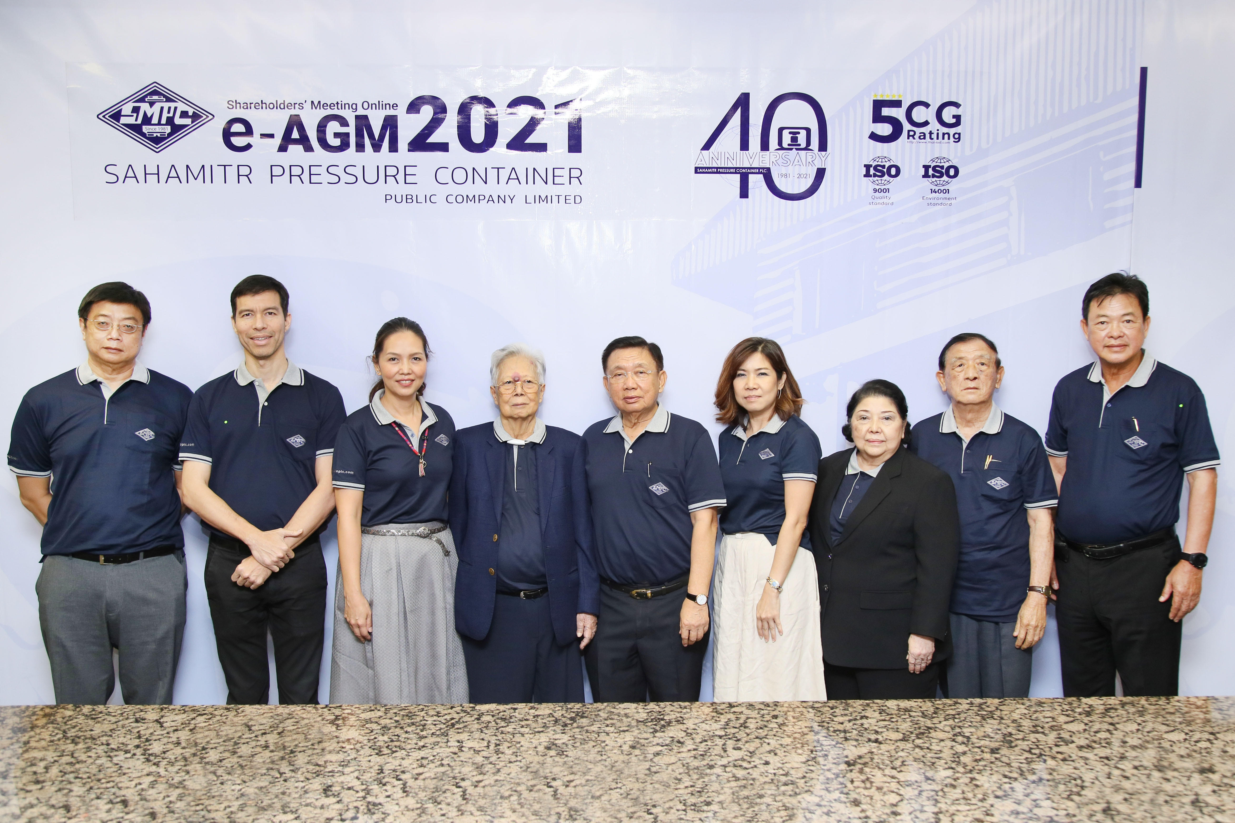 มิติหุ้น – นายวินัย วิทวัสการเวช (กลาง) ประธานกรรมการ บริษัท สหมิตรถังแก๊ส จำกัด (มหาชน) หรือ SMPC และนายสุรศักดิ์ เอิบสิริสุข (ขวาสุด) กรรมการผู้จัดการ พร้อมด้วยคณะกรรมการบริษัท ถ่ายภาพเป็นที่ระลึกร่วมกัน เนื่องในโอกาสจัดงานประชุมสามัญผู้ถือหุ้นประจำปี 2564 ในรูปแบบการประชุมผ่านสื่ออิเล็กทรอนิกส์ (E-AGM) โดยที่ประชุมพิจารณาอนุมัติจ่ายเงินปันผล สำหรับผลการดำเนินงานครึ่งปีหลังปี 2563 (1 กรกฎาคม – 31 ธันวาคม 2563) เป็นเงินสดในอัตราหุ้นละ 0.43 บาท รวมเป็นเงินทั้งสิ้นไม่เกิน 230,267,724 บาท โดยกำหนดรายชื่อผู้ถือหุ้นที่มีสิทธิรับเงินปันผล (Record Date) วันที่ 8 เมษายน 2564 และจ่ายเงินปันผลในวันที่ 30 เมษายนนี้ งานดังกล่าวจัดขึ้น ณ บมจ. สหมิตรถังแก๊ส เมื่อวันที่ 31 มีนาคม 2564 ที่ผ่านมา