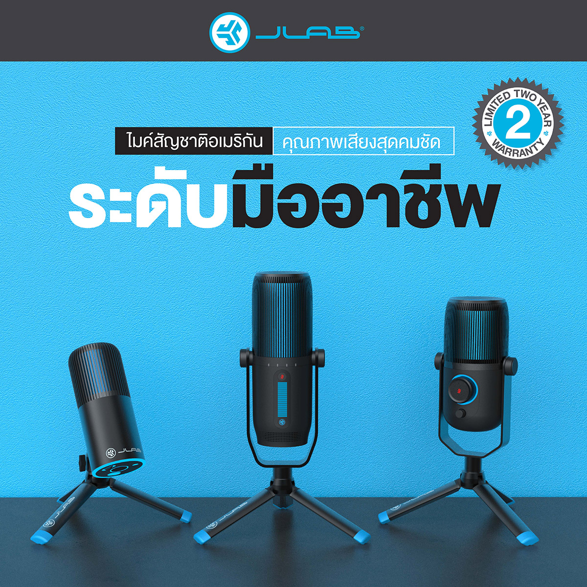 ขณะที่ JLab Talk เหมาะสำหรับกลุ่มผู้ใช้งานที่เริ่มมี Home studio ในการทำงานต้องการประสิทภาพของเสียงที่ดียิ่งขึ้นรวมถึงรองรับรูปแบบการใช้งานที่หลากหลายมากขึ้น JLab Talk เป็นไมโครโฟนแบบคอนเดนเซอร์ ที่มีภาครับเสียง 3 ชุด ที่มาพร้อมฟีเจอร์การปรับรูปแบบการรับเสียงได้ 4 แบบ ไม่ว่าจะเป็นรับเสียงจากด้านหน้า (Cardioid), รอบทิศทาง (omni), แบบสเตอริโอ(stereo)และแบบ 2 ทิศทาง (bi-directional) ทำให้ผู้ใช้งานสามารถจะสลับโหมดการรับเสียงไปมาตามได้สถานการณ์ที่ต้องการใช้งานได้ตลอดเวลา ไม่ว่าจะเป็นการสตรีมมิ่งเล่นเกม พอดคาสต์ หรือแม้กระทั่งอัดเสียงสัมภาษณ์ ทั้งยังให้คุณภาพเสียงที่คมชัดและละเอียดระดับ 24 bit นอกจากนี้ ยังสามารถให้ Sampling Rate ในการบันทึกเสียงสูงถึง 96k โดยมาพร้อมปุ่มควบคุมระดับการรับเสียงที่ตัวไมโครโฟน ทำให้สามารถควบคุมทุกอย่างได้ตามใจชอบ ที่สำคัญมีช่องเสียบหูฟังแบบ 3.5 mm และสาย USB-C ทำให้สามารถใช้งานได้บนระบบปฏิบัติการ Windows และ Mac ได้อย่างง่ายดาย โดย JLab Talk วางจำหน่ายในราคา 4,590บาท