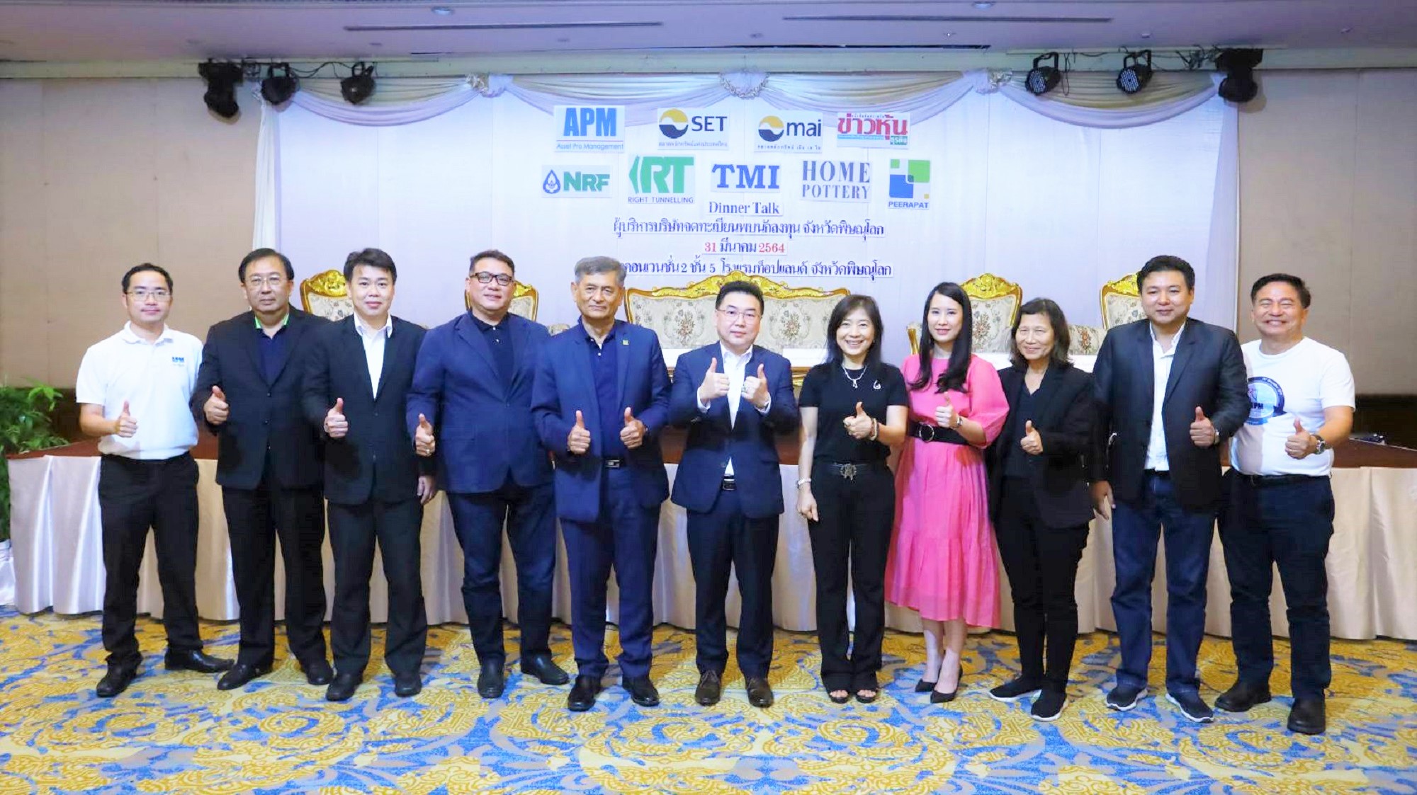 นายชวลิต ถนอมถิ่น ประธานเจ้าหน้าที่บริหาร และนายไชยา วงศ์ลาภพานิช รองกรรมการผู้จัดการสายงานบริหารและการเงิน บมจ. ไร้ท์ทันเน็ลลิ่ง (RT) พร้อมด้วย ผู้บริหาร บมจ.เอ็นอาร์ อิสแตนท์ โปรดิวซ์ (NRF) บมจ. ธีระมงคล อุตสาหกรรม (TMI) บมจ. โฮม พอตเทอรี่ (HPT) บมจ. พีรพัฒน์ เทคโนโลยี (PRAPAT) ร่วมด้วย พร้อมด้วยนายสมภพ ศักดิ์พันธ์พนม ประธานกรรมการ นายสุพล ค้าพลอยดี กรรมการผู้จัดการ บริษัท แอสเซท โปร แมเนจเม้นท์ จำกัด (APM) ที่ปรึกษาทางการเงิน และนายศิริโรจน์ ศิริสวัสดิ์ บรรณาธิการเว็บไซต์ข่าวหุ้นธุรกิจ เข้าร่วมงานสัมมนา “Dinner Talk ผู้บริหารบริษัทจดทะเบียนพบนักลงทุนจังหวัดพิษณุโลก” นำเสนอข้อมูลแผนธุรกิจและโอกาสการเติบโตแก่นักลงทุน จ.พิษณุโลก โดยมีผู้สนใจเข้ารับฟังข้อมูลเป็นจำนวนมาก ณ โรงแรมท็อปแลนด์ เมื่อเร็ว ๆ นี้