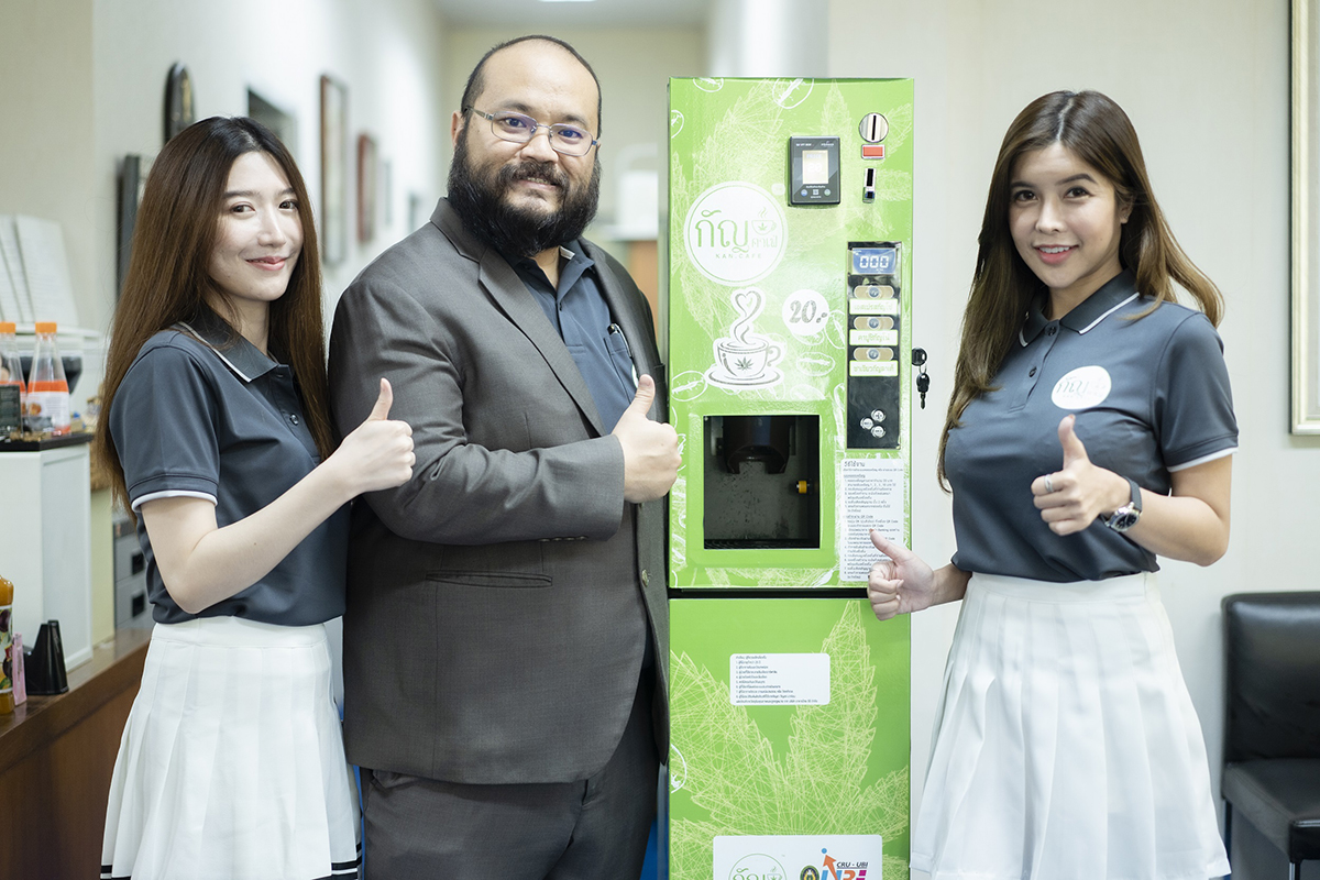 แฟรนไชส์ตู้กาแฟและเครื่องดื่มอัตโนมัติ (Vending Machine) กัญคาเฟ่ (KanCafe) เป็นแบบระบบหยอดเหรียญทุกขนาดและ QR Payment รองรับทุกธนาคาร ในยุคสังคมไร้เงินสดและลดความเสี่ยงจากสถานการณ์แพร่ระบาดโรคโควิค-19 ไม่ต้องจ้างพนักงาน สามารถเปิดขายได้ 24 ชั่วโมง ใช้พื้นที่ติดตั้งน้อยไม่ถึง 1 ตารางเมตร ไม่ต้องเสียค่าเช่าที่แพง ใช้ค่าไฟฟ้าวันละไม่เกิน 8 บาท คืนทุนได้ใน 3-4 เดือน (แล้วแต่ทำเล) ปัจจุบันมีด้วยกัน 4 เมนู เอสเปรสกัญโซ่ คาปูชิกัญโน่ ชาเขียวกัญลาเต้ และโกโก้กัญ จากผงกาแฟอราบิก้า 100% สายพันธุ์ดี และวัตถุดิบคุณภาพชั้นเยี่ยม ทำให้ได้กาแฟที่หอม อร่อย รสชาติกลมกล่อม และยังได้สุขภาพดี ไม่อ้วน น้ำตาลน้อย