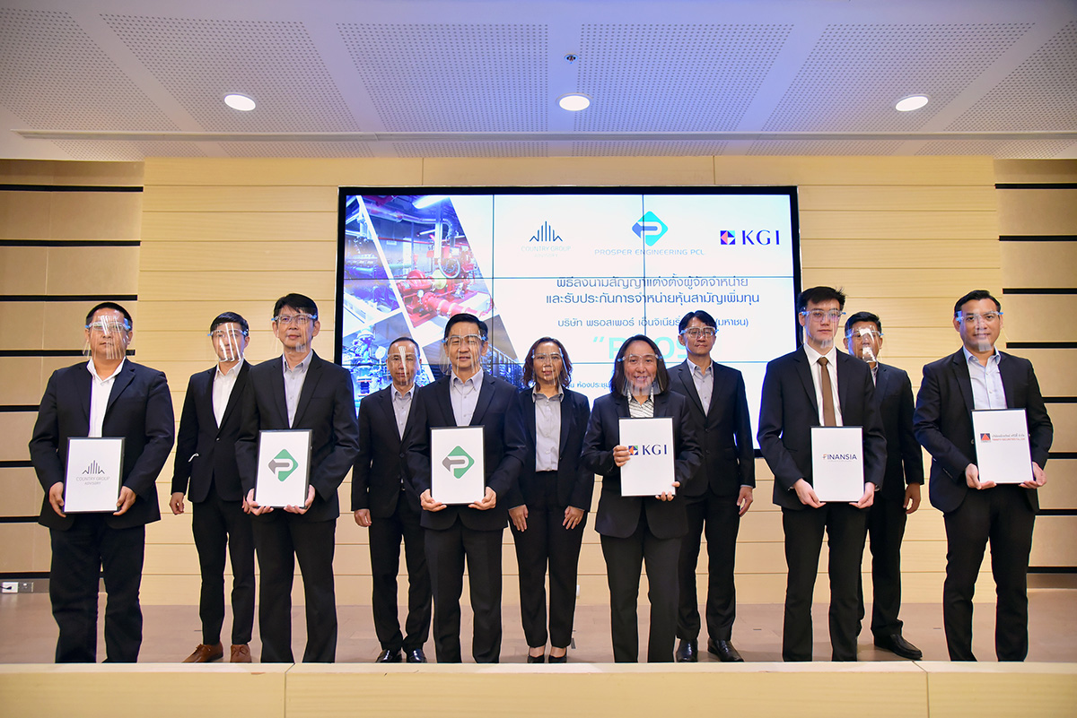 มิติหุ้น – นายพงศ์เทพ รัตนแสงสรวง (แถวหน้าที่ 3 จากซ้าย) ประธานเจ้าหน้าที่บริหาร บริษัท พรอสเพอร์ เอ็นจิเนียริ่ง จำกัด (มหาชน) หรือ PROS พร้อมด้วยคณะกรรมการบริษัท ร่วมพิธีลงนามในสัญญาแต่งตั้งผู้จัดจำหน่ายและรับประกันการจำหน่ายหุ้นสามัญเพิ่มทุนของ PROS ถ่ายภาพเป็นที่ระลึกร่วมกับนายสัมฤทธิ์ชัย ตั้งหะรัฐ (แถวหน้าซ้ายสุด) กรรมการผู้จัดการ บริษัทคันทรี่ กรุ๊ป แอ๊ดไวเซอรี่ จำกัด ที่ปรึกษาทางการเงิน และนางสาวพัชพร สรรคบุรานุรักษ์ (แถวหน้าที่ 3 จากขวา) กรรมการผู้จัดการ ฝ่ายวาณิชธนกิจ บริษัทหลักทรัพย์ เคจีไอ (ประเทศไทย) จำกัด (มหาชน) ผู้จัดการการจัดจำหน่ายและรับประกันการจำหน่ายหุ้นสามัญเพิ่มทุน พร้อมด้วยผู้บริหารบริษัทหลักทรัพย์ฟินันเซีย ไซรัส จำกัด (มหาชน) และบริษัทหลักทรัพย์ ทรีนิตี้ จำกัด ในฐานะผู้ร่วมจัดจำหน่ายและรับประกันการจำหน่าย ณ ห้องประชุม 603 อาคารตลาดหลักทรัพย์แห่งประเทศไทย โดย PROS เสนอขายหุ้นสามัญเพิ่มทุนให้แก่ประชาชน (IPO) จำนวน 140 ล้านหุ้น กำหนดราคาไอพีโอหุ้นละ 2 บาท เปิดจองซื้อระหว่างวันที่ 19-21 เม.ย.นี้ คาดเตรียมเข้าซื้อขายในตลาดหลักทรัพย์ เอ็ม เอ ไอ วันแรก ในวันที่ 27 เม.ย. 64