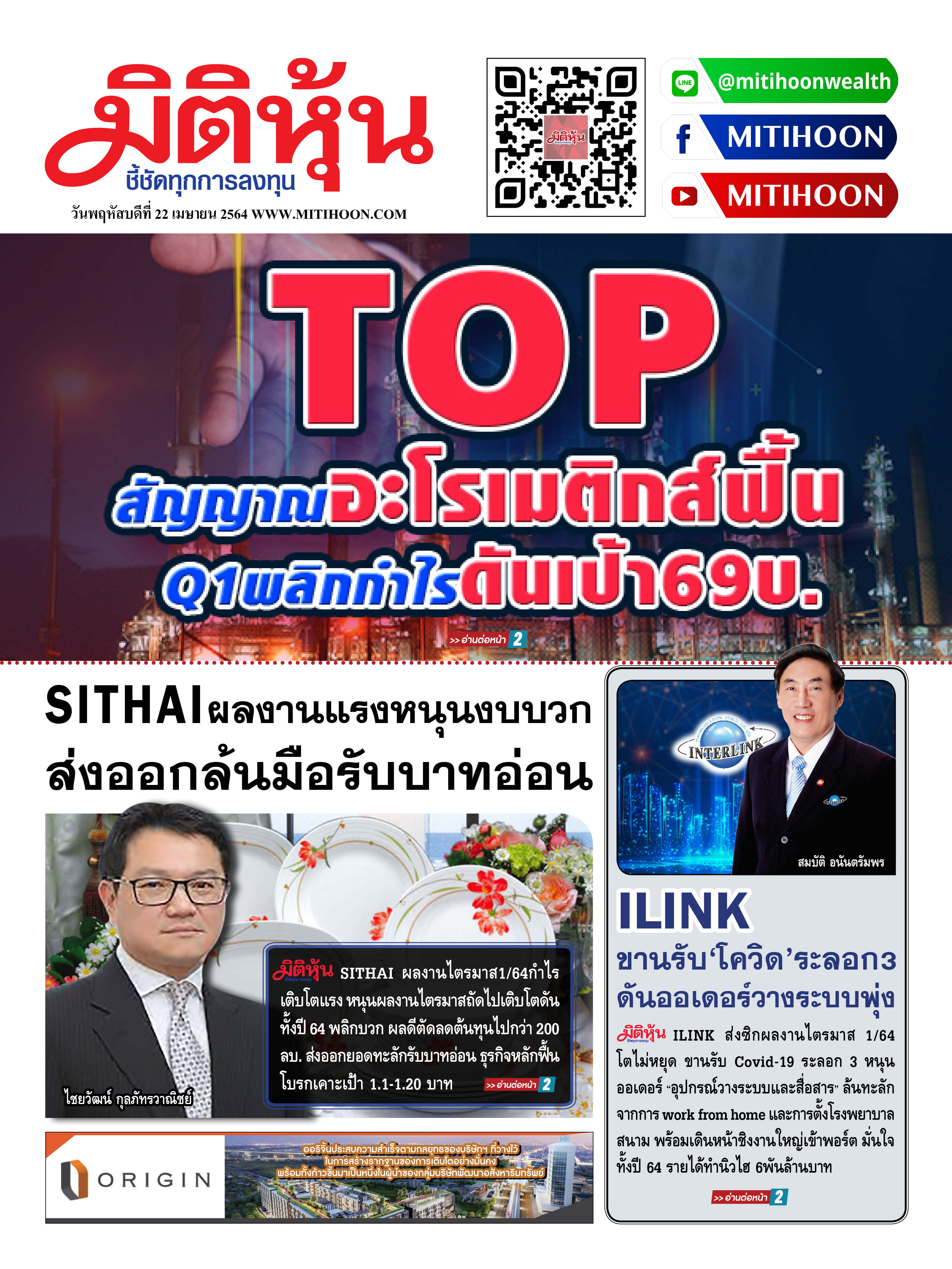 นสพ.มิติหุ้น “ชี้ชัดทุการลงทุน” ฉบับวันที่ 22 เมษายน 2564