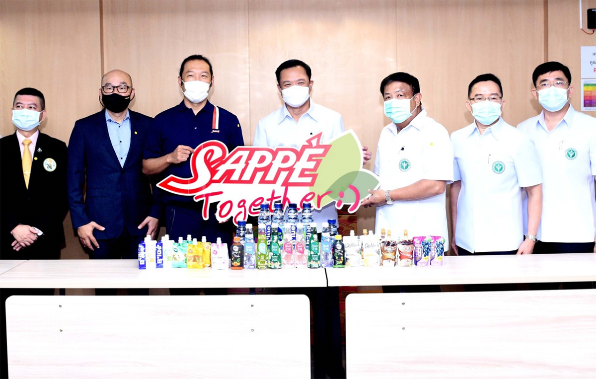 มิติหุ้น – นายอดิศักดิ์ รักอริยะพงศ์ (ที่ 3 จากซ้าย) รองประธานกรรมการ และประธานกรรมการบริหาร พร้อมด้วยทีมงาน บริษัท เซ็ปเป้ จำกัด (มหาชน) หรือ SAPPE ร่วมส่งมอบผลิตภัณฑ์เครื่องดื่