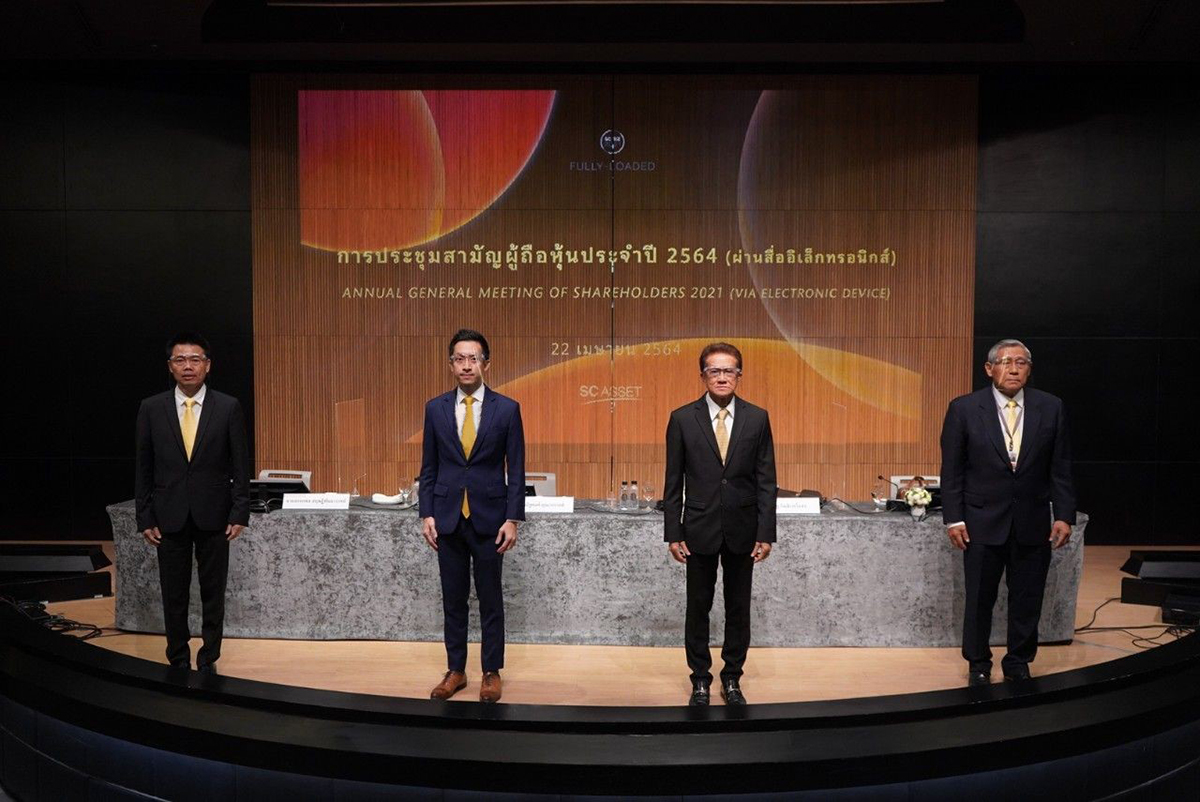 มิติหุ้น – บริษัท เอสซี แอสเสท คอร์ปอเรชั่น จำกัด (มหาชน) หรือ SC จัดงานประชุมสามัญผู้ถือหุ้นประจำปี 2564 โดยเปิดให้รับชมผ่านรูปแบบสื่ออิเลคทรอนิกส์ เพื่อป้องกันการแพร่ระบาดของเชื้อโควิด-19 โดยมีนายรัฐ กิตติเวชโอสถ ประธานกรรมการ เป็นประธานการประชุม พร้อมด้วยนายณัฐพงศ์ คุณากรวงศ์ ประธานเจ้าหน้าที่บริหาร พร้อมคณะกรรมการบริษัทเข้าร่วมประชุม เพื่อรายงานความสำเร็จในปี 2563 เกี่ยวกับผลดำเนินงานและการพัฒนาอย่างยั่งยืนของธุรกิจ โดยที่ประชุมมีมติอนุมัติให้จ่ายเงินปันผลสำหรับผลการดำเนินงานของปี 2563 ในอัตราหุ้นละ 0.18 บาท โดยกำหนดจ่ายปันผลวันที่ 20 พฤษภาคมนี้
