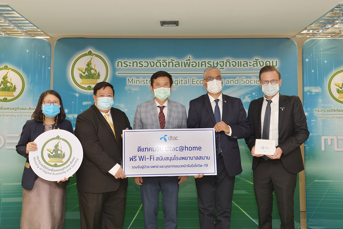 มิติหุ้น – ดีแทคเปิดให้บริการ Free Wi-Fi ที่โรงพยาบาลสนามผ่าน dtac@Home หรือ Fixed Wireless Broadband ซึ่งเป็นอุปกรณ์ติดตั้งง่ายทุกที่ไม่ต้องเดินสาย ล่าสุดนายชารัด เมห์โรทา ประธานเจ้าหน้าที่บริหาร บริษัท โทเทิ่ล แอ็คเซ็ส คอมมูนิเคชั่น จำกัด (มหาชน) หรือดีแทคเดินทางเข้าพบนายชัยวุฒิ ธนาคมานุสรณ์ รัฐมนตรีว่าการกระทรวงดิจิทัลเพื่อเศรษฐกิจและสังคม (ดีอีเอส) ที่กระทรวงฯ เพื่อปรึกษาแผนงานรองรับสถานการณ์โควิด-19 ร่วมกัน และมอบ dtac@home อุปกรณ์ที่ให้บริการ Free Wi-Fi รูปแบบ หรือ Fixed Wireless Broadband สำหรับนำไปใช้งานที่โรงพยาบาลสนาม สนับสนุนการทำงานของบุคลากรทางการแพทย์ พยาบาล เจ้าหน้าที่สาธารณสุข และหน่วยงานที่เกี่ยวข้องในการปฏิบัติหน้าที่เกี่ยวข้องในการรักษาและควบคุมโรคระบาดโควิด-19 รวมถึงรองรับการใช้งานของผู้ป่วย ทั้งนี้ ดีแทคได้ปรับโครงข่ายมือถือเพื่อรองรับการใช้งานจำนวนมากในทุกโรงพยาบาลสนามตั้งแต่วันแรกที่มีการจัดทำโรงพยาบาลสนามในทุกๆ ที่