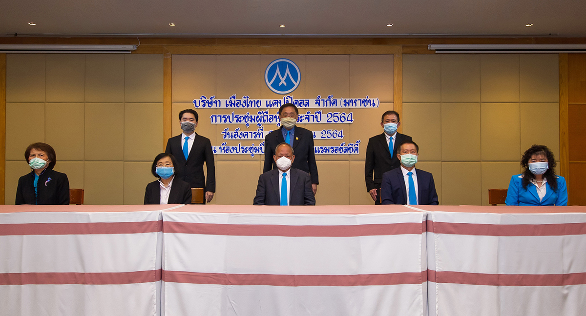 มิติหุ้น – พลเรือเอกอภิชาติ เพ็งศรีทอง ประธานกรรมการ และคุณชูชาติ เพ็ชรอำไพ ประธานกรรมการบริหาร บริษัท เมืองไทย แคปปิตอล จำกัด (มหาชน) หรือ MTC พร้อมคณะผู้บริหาร ถ่ายภาพร่วมกันหลังการประชุมสามัญผู้ถือหุ้นประจำปี 2564 โดยผู้ถือหุ้นมีมติอนุมัติจ่ายเงินปันผลงวดปี 63 ในอัตรา 0.37 บาท/หุ้น ขึ้นเครื่องหมาย XD วันที่ 29 เม.ย. กำหนดจ่ายเงินปันผลในวันที่ 17 พ.ค.นี้ คาดแนวโน้มผลงานไตรมาส 1/64 โตแกร่ง โดยได้รับปัจจัยหนุนจากยอดการปล่อยสินเชื่อเติบโตได้ดี หลังเดินหน้าขยายสาขาตามแผน พร้อมลุยขยายตลาดสินเชื่อเช่าซื้อรถจักรยานยนต์ใหม่อย่างต่อเนื่อง รองรับความต้องการของลูกค้า ผลักดันให้พอร์ตสินเชื่อปีนี้เติบโตตามเป้า 20-25% งานดังกล่าวจัดขึ้นเมื่อเร็วๆ นี้