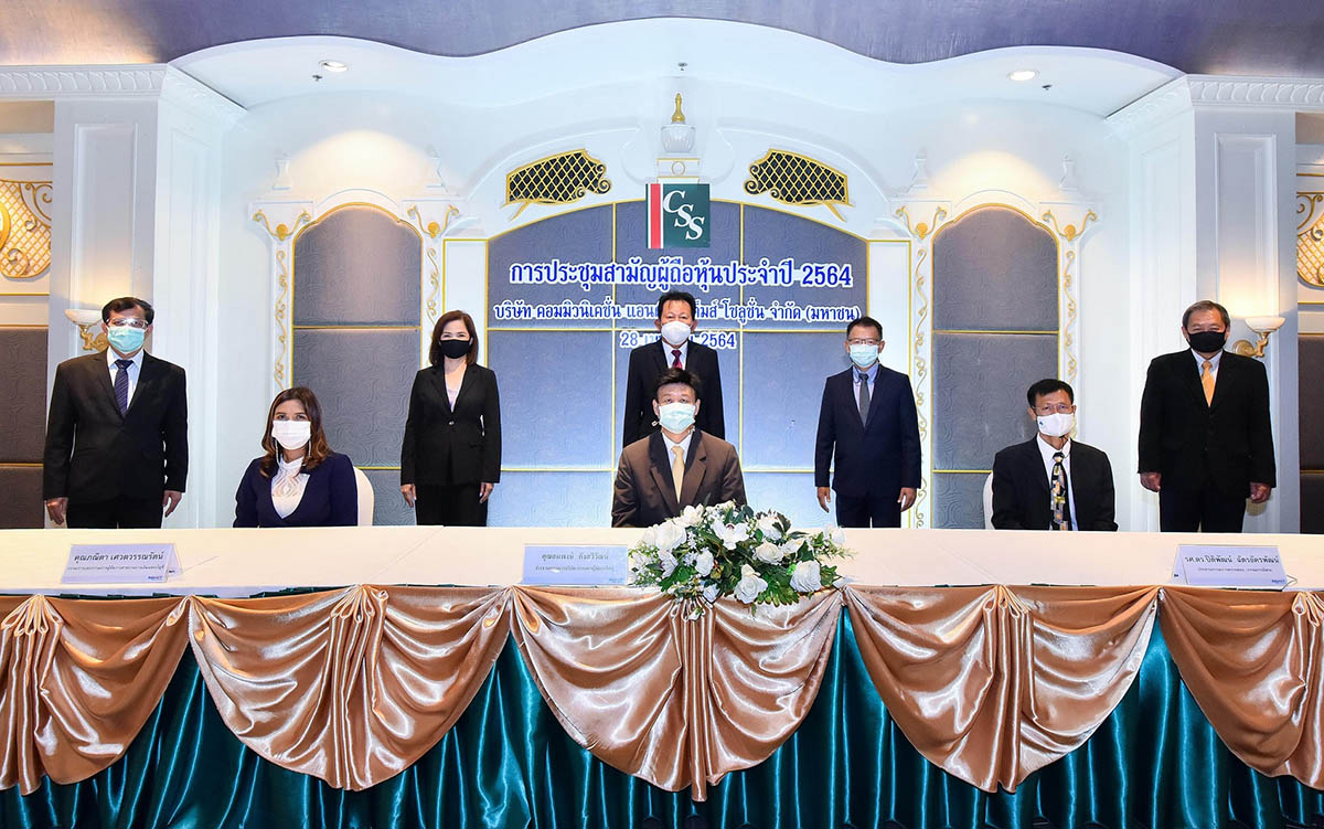 มิติหุ้น – คุณสมพงษ์ กังสวิวัฒน์ ประธานเจ้าหน้าที่บริหาร บมจ.คอมมิวนิเคชั่น แอนด์ ซิสเต็มส์ โซลูชั่น (CSS) พร้อมคณะกรรมการและผู้บริหารบริษัท ถ่ายภาพร่วมกันในงานประชุมสามัญผู้ถือหุ้นประจำปี 2564 โดยที่ประชุมมีมติเห็นชอบให้จ่ายเงินปันผลงวดปี 2563 เพิ่มอีกในอัตราหุ้นละ 0.03 บาท ซึ่งบริษัทฯ ได้จ่ายปันผลระหว่างกาลงวดครึ่งปีแรกไปแล้วในอัตราหุ้นละ 0.03 บาท รวมจ่ายปันผลงวดปี 2563 ในอัตราหุ้นละ 0.06 บาท กำหนดจ่ายวันที่ 27 พฤษภาคมนี้ โดยปีนี้บริษัทฯ ตั้งเป้ารายได้จะเติบโตไม่ต่ำกว่า 20% และเข้าร่วมประมูลงานใหม่ๆ อย่างต่อเนื่อง เพื่อต่อยอดงานในมือให้เพิ่มมากขึ้น หนุนการเติบโตระยะยาวและสร้างผลตอบแทนที่ดีให้กับผู้ถือหุ้นในอนาคต