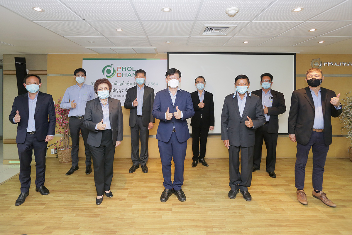 มิติหุ้น – รศ.ดร.เอกจิตต์ จึงเจริญ (กลาง) ประธานกรรมการ บริษัท ผลธัญญะ จำกัด (มหาชน) หรือ PHOL คุณบุญชัย สุวรรณวุฒิวัฒน์ (แถวหลัง ที่ 2 จากซ้าย) ประธานเจ้าหน้าที่บริหาร พร้อมด้วยคณะกรรมการของบริษัทฯ ถ่ายภาพเป็นที่ระลึกในโอกาสจัดงานประชุมสามัญผู้ถือหุ้นประจำปี 2564 โดยที่ประชุมฯ มีมติอนุมัติทุกวาระตามที่คณะกรรมการเสนอ รวมทั้งการจ่ายปันผล ในอัตราหุ้นละ 0.29 บาทต่อหุ้น ทั้งนี้ บริษัทฯ ได้จ่ายปันผลระหว่างกาลไปแล้ว 0.15 บาทต่อหุ้น คงเหลือจ่ายปันผลในอัตราหุ้นละ 0.14 บาทต่อหุ้น กำหนดจ่ายปันผลวันที่ 20 พฤษภาคม 2564 โดยงานดังกล่าวจัดขึ้น ณ ห้องประชุม สำนักงานใหญ่ เมื่อเร็วๆ นี้ โดยบริษัทฯ ได้จัดการประชุมภายใต้คำแนะนำของกระทรวงสาธารณสุขอย่างเคร่งครัด เพื่อเป็นการป้องกันการแพร่ระบาดของโรค COVID-19