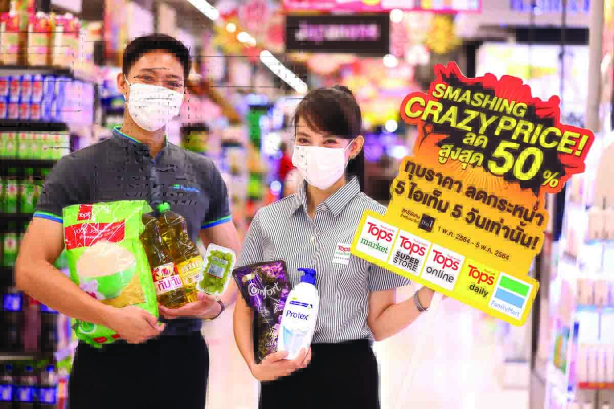 มิติหุ้น – ท็อปส์ และ แฟมิลี่มาร์ท ในเครือ เซ็นทรัล รีเทล พร้อมจับมือ คนไทยฝ่าวิกฤต ย้ำจุดยืนผู้นำซูเปอร์มาร์เก็ตที่ยืนหยัดเคียงข้างคนไทยในทุกสถานการณ์ อัดโปรแรงต้อนรับวันแรงงาน “Smashing Crazy Price ลดสูงสุด 50% ทุบราคา ลดกระหน่ำ 5 ไอเท็ม 5 วันเท่านั้น” ตั้งแต่วันที่ 1 – 5 พฤษภาคม 2564 พบกับสินค้าคุณภาพดีในราคาเกินคุ้ม ได้แก่ องุ่นดำเขียวไม่มีเมล็ดแพค 500 กรัม พิเศษ 79 บาท, ท็อปส์ข้าวหอมมะลิ 100 % 5 กก. พิเศษ 159 บาท, น้ำมันปาล์มตราหยกและทับทิม ขวด 1 ลิตร พิเศษ 45 บาท และสินค้า ซื้อ 1 แถม 1 ได้แก่ โพรเทคส์ครีมอาบน้ำ ขนาด 450 มล. ในราคาเพียง 165 บาท, คอมฟอร์ท ผลิตภัณฑ์ปรับผ้านุ่มสูตรเข้มข้น 1,300 มล.ชนิดเติม ราคาเพียง 165 บาท ที่ ท็อปส์ มาร์เก็ต, ท็อปส์ ซูเปอร์สโตร์, ท็อปส์ เดลี่, แฟมิลี่มาร์ททุกสาขา และท็อปส์ ออนไลน์ เฉพาะที่ แฟมิลี่มาร์ท คอมฟอร์ท ผลิตภัณฑ์ปรับผ้านุ่มสูตรเข้มข้นชนิดเติม ขนาด 580 มล. ราคาพิเศษ 79 บาท และองุ่นไม่มีเมล็ดแพค 250 กรัม พิเศษ 39 บาท