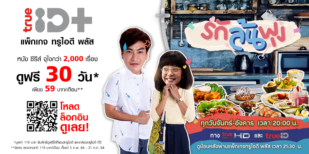 เรื่องราวสุดพิเศษเหล่านี้ จะฟินยิ่งขึ้นเมื่อดูกับทรูไอดี เพราะดูออนไลน์ได้ทุกที่ทุกเวลาแบบไม่มีสะดุด ครบทุกแพลตฟอร์ม ทั้งแอป เว็บ และกล่องทรูไอดี กับแพ็กเกจ ทรูไอดี พลัส ในราคาเพียง 59 บาทต่อเดือน เมื่อสมัครก่อน 31 ก.ค.นี้ หรือเลือกดูฟรี Let’s Eat ก่อน 3 ตอน แล้วค่อยจ่ายก็ยังได้ แถมดูฟรีต่อเนื่องไปอีก 30 วันฟรี คลิกดูรายละเอียดที่ https://trueid.onelink.me/14Ip/bfb44e83 นอกจากนี้ยังสามารถรับชมคอนเทนต์ที่น่าสนใจได้อีกกว่า 2,000 รายการ ในทรูไอดี พลัส และมีคอนเทนต์เอ็กคลูซีฟ อาทิ WayV ซีซั่น2, ละครเวทีเพลงจากค่าย Scenario และอื่นๆอีกมากมาย ที่สำคัญหลังจากรับชมความสนุกจาก Let’s Eat รักล้นพุงแล้ว ทุกคนยังสามารถมาร่วมพูดคุยและแลกเปลี่ยนความคิดเห็นกับคอเดียวกันผ่านทาง TrueID Communityได้อีกด้วย โดยคลิกเข้าไปชิทแชทได้ที่ https://bit.ly/3vt142m