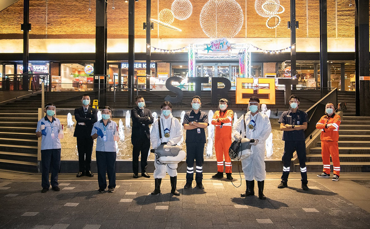 – การพ่นน้ำยาฆ่าเชื้อทั่วพื้นที่ทั้งในและนอกศูนย์การค้าฯ ทุกวัน ก่อนเปิดให้บริการและหลังปิดบริการ