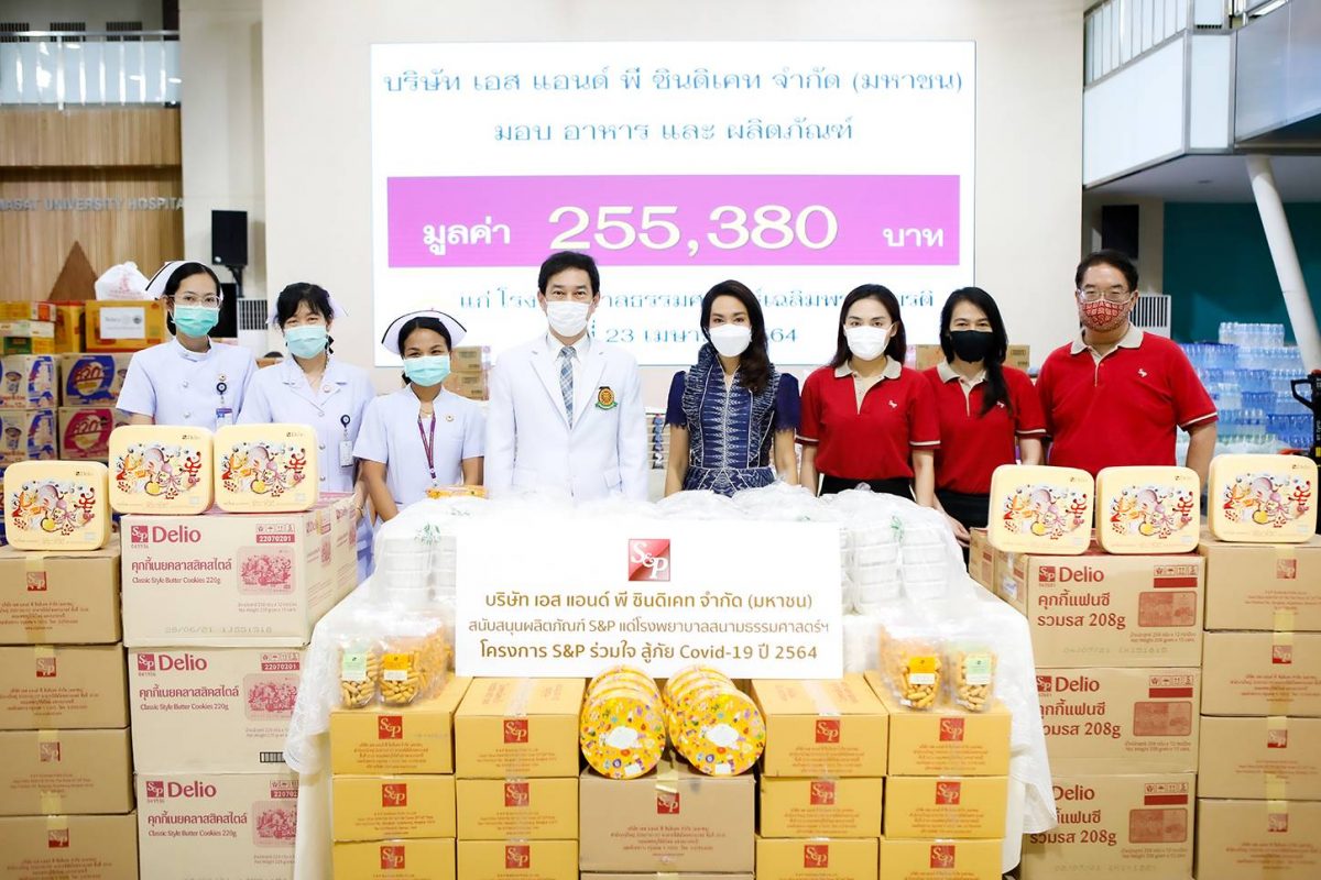คุณมณีสุดา ศิลาอ่อน ผู้อำนวยการสำนักพัฒนาความยั่งยืนและสื่อสารองค์กร บริษัท เอส แอนด์ พี ซินดิเคท จำกัด (มหาชน) กล่าวว่า “ท่ามกลางสถานการณ์การแพร่ระบาดของโควิด-19 ระลอกใหม่นี้ เอส แอนด์ พี ขอเป็นส่วนหนึ่งในการสนับสนุนอาหารปลอดภัย เพื่อให้กำลังใจบุคลากรทางการแพทย์ผู้เสียสละและทุ่มเทในการรักษาผู้ป่วยโรคโควิด-19 ด้วยการส่งมอบผลิตภัณฑ์เอส แอนด์ พี ได้แก่ อาหารกล่อง อาหารแช่แข็ง ผลิตภัณฑ์คุกกี้เอส แอนด์ พี คุกกี้เดลิโอ บัทเทอร์เค้กซอง เค้กกล้วยหอม ขนมข้อไก่เนยสด เจลิโอเจลลี่ และน้ำดื่ม มูลค่ารวมทั้งสิ้น 4,191,238 บาท ให้แก่โรงพยาบาล และโรงพยาบาลสนามในภูมิภาคต่างๆ ทั่วประเทศ