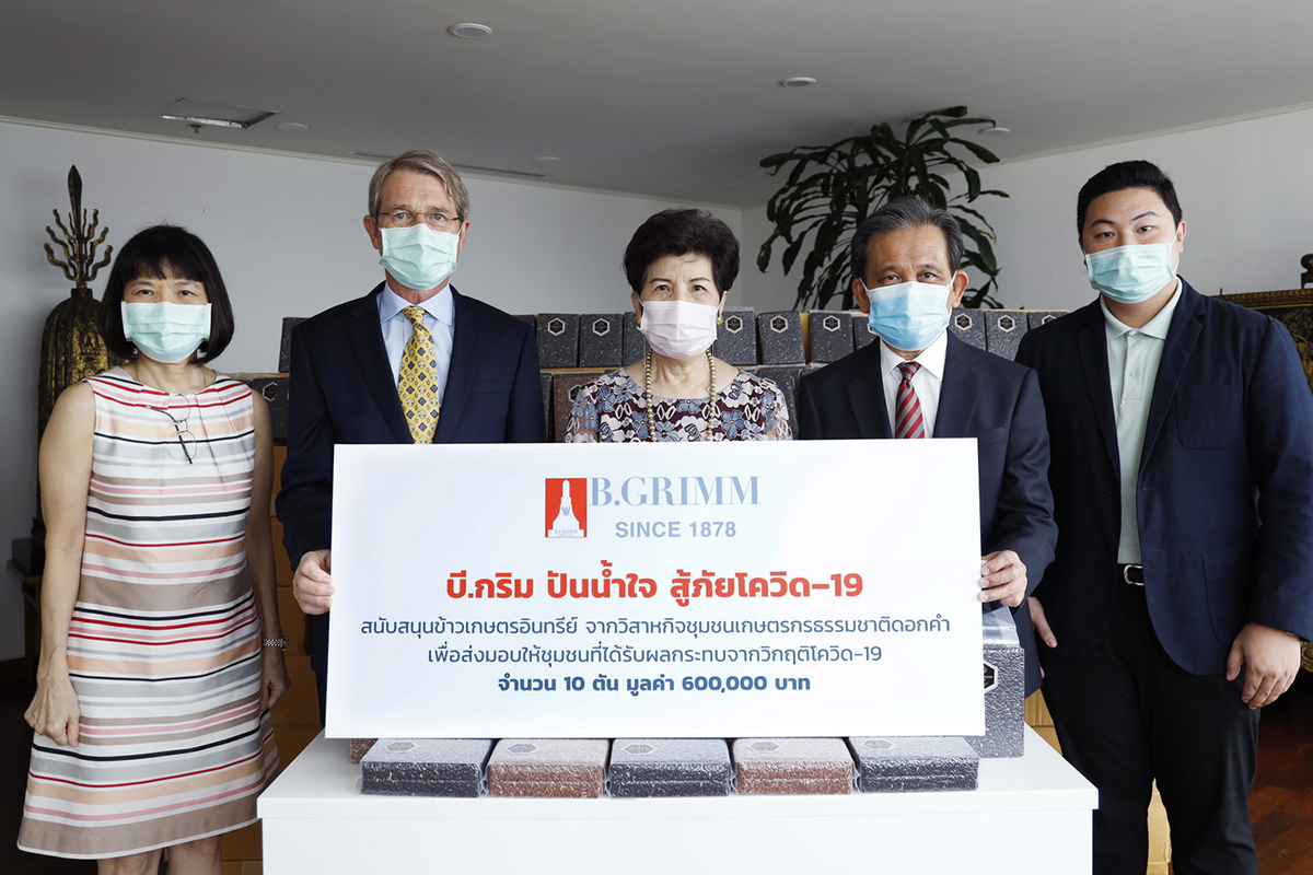 มิติหุ้น – ดร. ฮาราลด์ ลิงค์ ประธาน บี.กริม และประธานเจ้าที่บริหาร บริษัท บี.กริม เพาเวอร์ จำกัด (มหาชน) พร้อมด้วย คุณหญิงทิพาวดี เมฆสวรรค์ และ นายวีรพล ตั้งสุวรรณ ที่ปรึกษากิตติมศักดิ์ บริษัท บี.กริม เพาเวอร์ จำกัด (มหาชน) มอบข้าวเกษตรอินทรีย์ไรซ์เบอรี่และข้าวหอมมะลิแดง จำนวน 10 ตัน มูลค่า 600,000 บาท ซึ่งเป็นผลผลิตของกลุ่มวิสาหกิจชุมชนเกษตรอินทรีย์ดอกคำ อำเภอพร้าว จังหวัดเชียงใหม่ เพื่อนำไปช่วยเหลือชุมชนในพื้นที่ต่างๆ ที่ได้รับผลกระทบจากการแพร่ระบาดของไวรัสโควิค-19 ระลอกใหม่ ผ่านโครงการ “บี.กริม ปันน้ำใจ สู้ภัยโควิด-19”