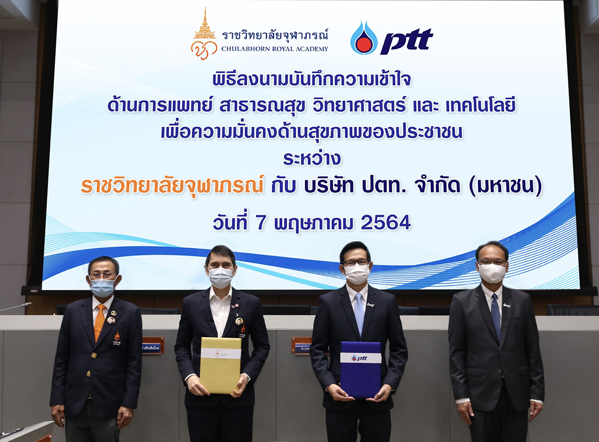 มิติหุ้น – ศาสตราจารย์ นายแพทย์นิธิ มหานนท์ เลขาธิการราชวิทยาลัยจุฬาภรณ์ และ นายอรรถพล ฤกษ์พิบูลย์ ประธานเจ้าหน้าที่บริหารและกรรมการผู้จัดการใหญ่ บริษัท ปตท. จำกัด (มหาชน) (ปตท.) ร่วมลงนามในบันทึกความเข้าใจระหว่าง ราชวิทยาลัยจุฬาภรณ์ กับบริษัท ปตท. จำกัด (มหาชน) ณ สำนักงานราชวิทยาลัยจุฬาภรณ์ เพื่อสร้างระบบสุขภาพและความมั่นคงทางด้านสาธารณสุขที่จำเป็นแก่ประเทศ