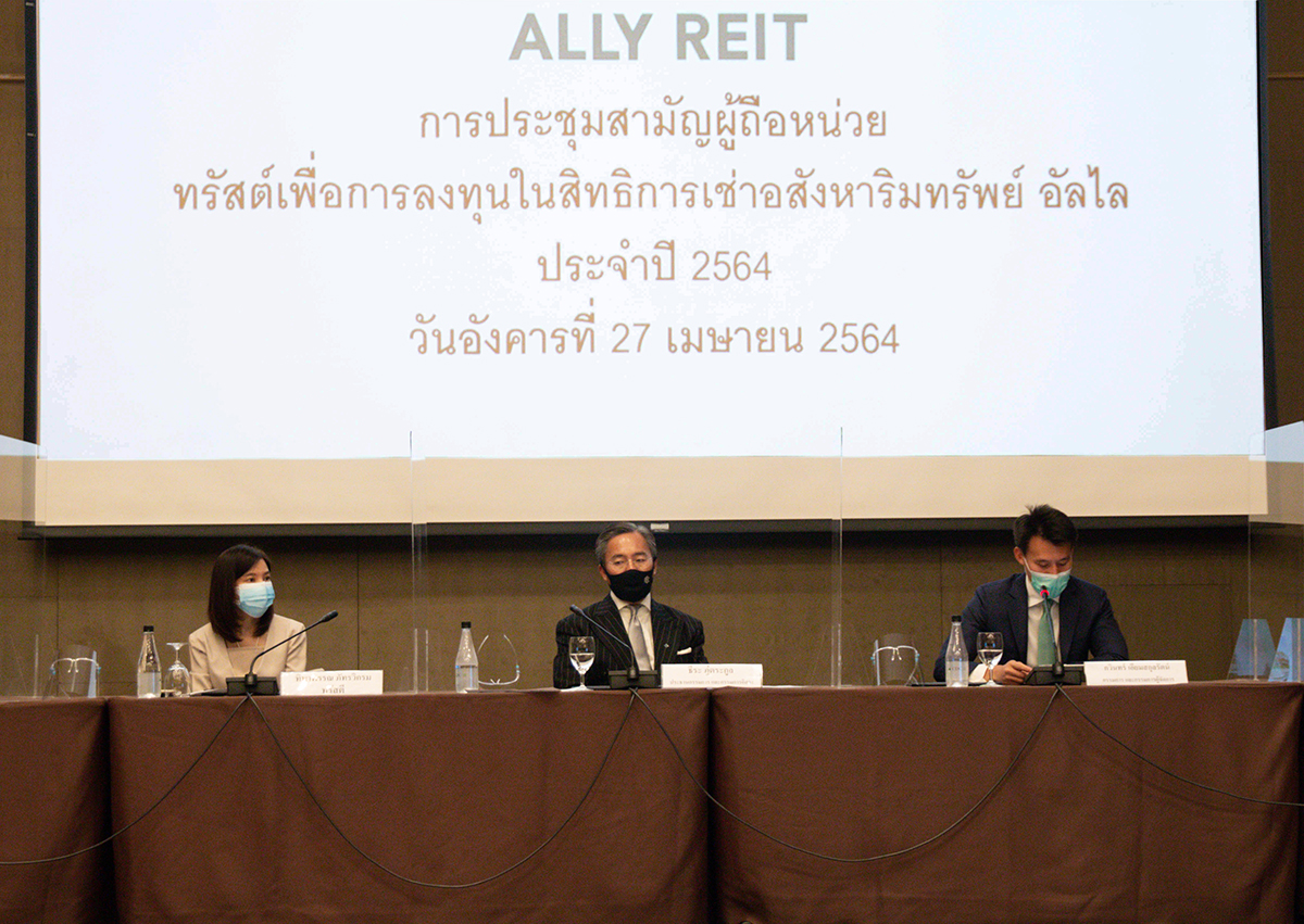 มิติหุ้น – นายกวินทร์ เอี่ยมสกุลรัตน์ กรรมการผู้จัดการ บริษัท เค.อี.รีท แมเนจเมนท์ จำกัด (ในเครือ เคอี กรุ๊ป) ในฐานะผู้จัดการกองทรัสต์เพื่อการลงทุนในสิทธิการเช่าอสังหาริมทรัพย์อัลไล (ALLY) เปิดเผยผลการประชุมสามัญผู้ถือหน่วยทรัสต์ ประจำปี 2564 ว่าที่ประชุมมีมติอนุมัติการเข้าลงทุนทรัพย์สินเพิ่มเติมในโครงการเดอะคริสตัล ชัยพฤกษ์ มูลค่าการลงทุนไม่เกิน 280 ล้านบาท และรับทราบการเข้าลงทุนในโครงการกาดฝรั่ง วิลเลจ มูลค่าลงทุนไม่เกิน 390 ล้านบาท ซึ่งเข้าลงทุนแล้วเมื่อวันที่ 6 พฤษภาคม ที่ผ่านมา โดยหลังจากเข้าลงทุนเพิ่มเติม 2 โครงการนี้แล้ว ALLY จะกลายเป็นเจ้าของพอร์ตศูนย์การค้าประเภทคอมมูนิตี้มอลล์ที่ใหญ่ที่สุดในประเทศ วัดจากมูลค่าทรัพย์สินรวมที่ประมาณ 13,000 ล้านบาท ซึ่งมีทั้งหมด 12 โครงการ และพื้นที่ขายกว่า 156,000 ตารางเมตร