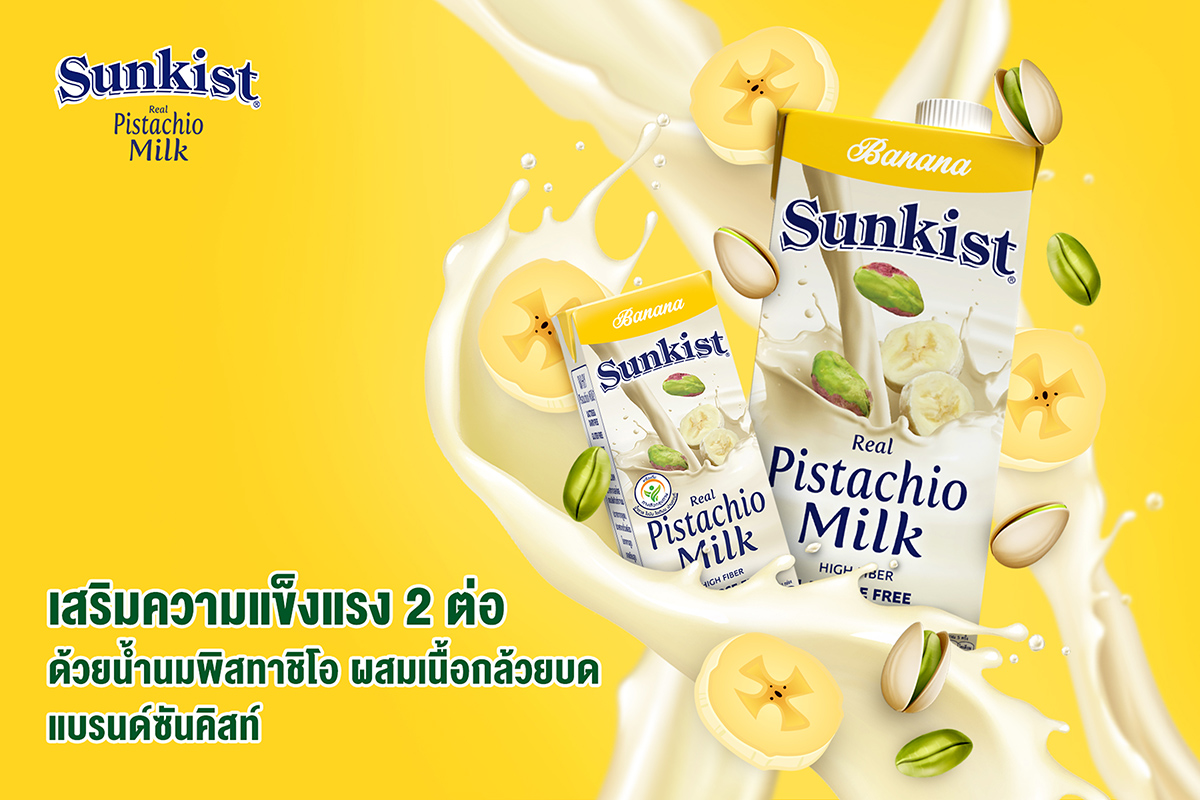 วันนี้ ซันคิสท์ แบรนด์ผลิตภัณฑ์ถั่วพิสทาชิโอ และเครื่องดื่มน้ำนมพิสทาชิโอ ภายใต้เครือเฮอริเทจ จึงขอเชิญชวนทุก ๆ คนมารับรสชาติความอร่อย 2 ต่อไปกับเครื่องดื่มน้ำนมพิสทาชิโอ ผสมเนื้อกล้วยบด ที่อัดแน่นไปด้วยคุณประโยชน์แบบจัดหนัก โดยต่อที่ 1 จัดเน้น ๆ จากถั่วพิสทาชิโอที่ผ่านกระบวนการผลิตอย่างพิถีพิถัน และใส่ใจในทุกขั้นตอนเพื่อให้ได้นมพิสทาชิโอที่ดีที่สุด เต็มเปี่ยมไปด้วยโปรตีน แคลเซียม และใยอาหารสูง สามารถช่วยเรื่องระบบขับถ่ายให้ทำงานได้ดียิ่งขึ้น จัดเต็มกับต่อที่ 2 ได้คุณประโยชน์จากกล้วยแท้ ๆ ที่บดละเอียดผสมอย่างลงตัว อุดมไปด้วยวิตามินและแร่ธาตุที่ดีต่อสุขภาพเหมาะสำหรับทุกเพศทุกวัย
