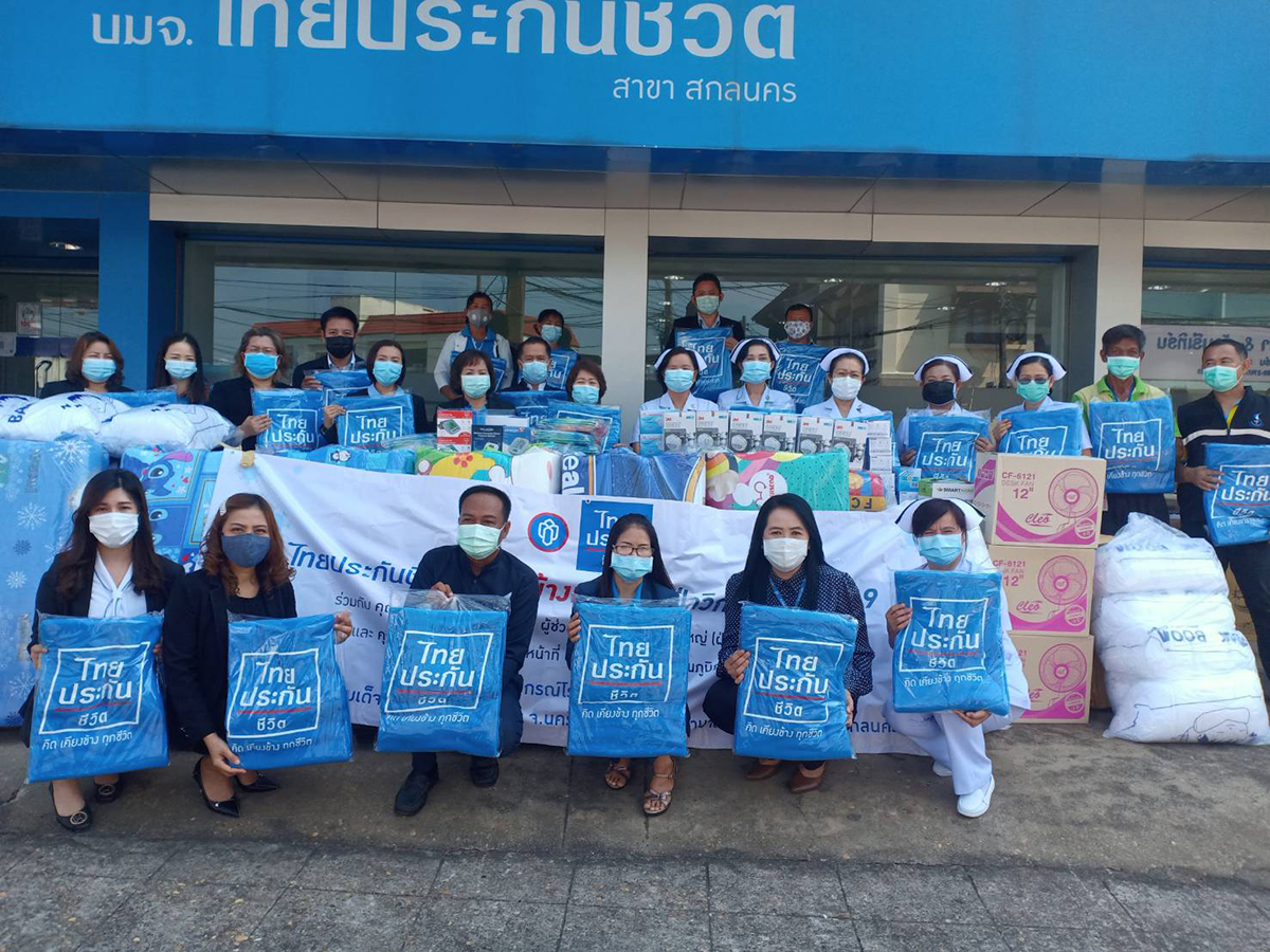 ขณะเดียวกัน บริษัทฯ ยังได้ร่วมบริจาคผ้าห่มไทยประกันชีวิตให้กับสถานที่รักษาพยาบาลผู้ป่วยโรคโควิด-19 ทั้งในกรุงเทพฯ และต่างจังหวัด ประกอบด้วย โรงพยาบาลผู้สูงอายุบางขุนเทียน (โรงพยาบาลสนามในเขตกรุงเทพฯ), กองทัพภาคที่ 2 ค่ายสุรนารี จังหวัดนครราชสีมา, โรงพยาบาลสนามมณฑลทหารบกที่ 17 ค่ายสุรสีห์ จังหวัดกาญจนบุรี, โรงพยาบาลอาภากรเกียรติวงศ์ ฐานทัพเรือสัตหีบ จังหวัดชลบุรี, มอบอุปกรณ์โรงพยาบาลสนามให้แก่โรงพยาบาลสมเด็จพระยุพราชธาตุพนม จังหวัดนครพนม และโรงพยาบาลศูนย์สกลนคร จังหวัดสกลนคร รวมถึงบริจาคนํ้าดื่มไทยประกันชีวิต ให้แก่ชุมชนโดยรอบวัดจากแดง จังหวัดสมุทรปราการ ซึ่งได้รับผลกระทบจากโรคโควิด-19