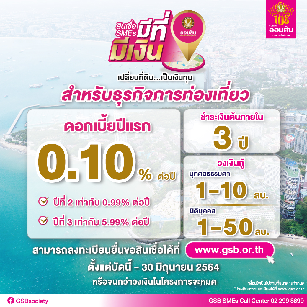 ทั้งนี้ สินเชื่อ SMEs มีที่ มีเงิน เป็นสินเชื่อเพื่อเสริมสภาพคล่องทางธุรกิจให้กับผู้ประกอบการธุรกิจท่องเที่ยว โดยผ่อนปรนหลักเกณฑ์การให้สินเชื่อ ให้กู้ทั้งบุคคลธรรมดาและนิติบุคคล สามารถใช้ที่ดินเปล่าหรือที่ดินพร้อมสิ่งปลูกสร้างเป็นหลักประกันการกู้ รวมถึงสามารถไถ่ถอนที่ดินซึ่งทำสัญญาขายฝากกับเอกชนไว้ตั้งแต่วันที่ 1 มกราคม – 31 ธันวาคม 2563 ให้วงเงินสินเชื่อต่อรายไม่เกิน 70% ของราคาประเมินที่ดินราชการ ระยะเวลากู้ 3 ปี อัตราดอกเบี้ยต่ำมาก ปีที่ 1 อัตราดอกเบี้ย = 0.10% ต่อปี ปีที่ 2 = 0.99 ต่อปี และปีที่ 3 = 5.99 ต่อปี กรณีบุคคลธรรมดาให้กู้ไม่เกิน 10 ล้านบาท ส่วนนิติบุคคลให้กู้ไม่เกิน 50 ล้านบาท.