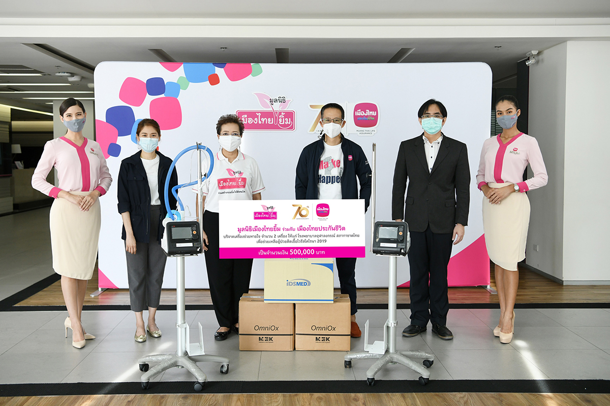 โดยล่าสุดเมืองไทยประกันชีวิต ร่วมกับมูลนิธิเมืองไทยยิ้ม มอบเครื่องช่วยหายใจจำนวน 12 เครื่อง เป็นจำนวนเงิน 2,700,00 บาท ให้แก่โรงพยาบาลทั้ง 6 แห่ง ได้แก่ โรงพยาบาลจุฬาลงกรณ์ สภากาชาดไทย โรงพยาบาลตำรวจ โรงพยาบาลพระมงกุฎเกล้า โรงพยาบาลราชวิถี โรงพยาบาลเจริญกรุงประชารักษ์ และโรงพยาบาลมหาราชนครเชียงใหม่ เพื่อนำไปช่วยเหลือผู้ป่วยติดเชื้อไวรัสโคโรนา 2019 (COVID-19)