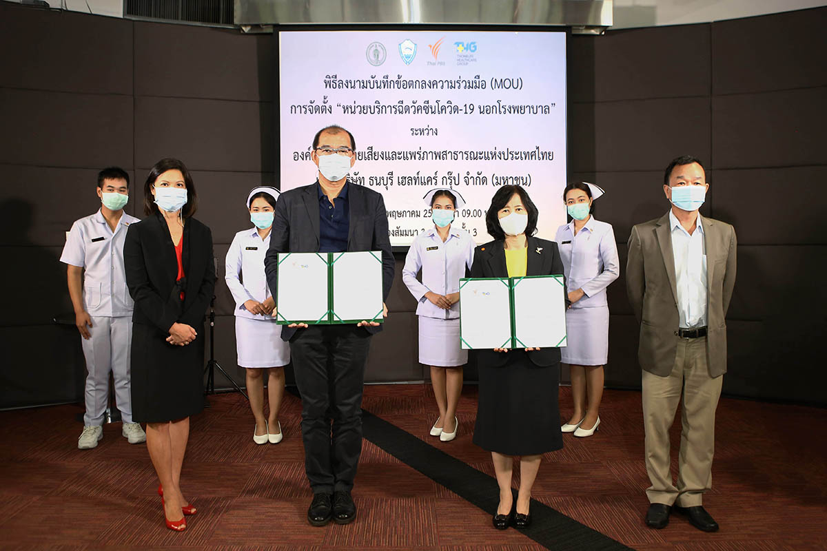 รศ.ดร.วิลาสินี พิพิธกุล ผู้อำนวยการองค์การกระจายเสียงและแพร่ภาพสาธารณะแห่งประเทศไทย (Thai PBS) กล่าวว่า Thai PBS มีความยินดีที่ได้ร่วมมือกับ บมจ.ธนบุรี เฮลท์แคร์ กรุ๊ป เปิดหน่วยบริการฉีดวัคซีน โควิด-19 นอกโรงพยาบาล ของ กรุงเทพมหานคร–หอการค้าไทย แก่ประชาชนที่ลงทะเบียนล่วงหน้า เพื่อร่วมเป็นส่วนหนึ่งในการสนับสนุนประชาชนได้เข้าถึงวัคซีนได้อย่างรวดเร็วยิ่งขึ้น และยับยั้งวิกฤตการแพร่ระบาดระลอกใหม่ โดย Thai PBS ได้ปรับเปลี่ยนพื้นที่บริเวณคอนเวนชั่นฮอลล์ ชั้น 2 อาคาร D ภายในที่ทำการสถานีโทรทัศน์ไทยพีบีเอส เพื่อให้บริการนับตั้งแต่การลงทะเบียน คัดกรอง ฉีดวัคซีน พร้อมดูแลสังเกตอาการหลังฉีด โดยจะเริ่มเปิดให้บริการได้ตั้งแต่วันที่ 7 มิถุนายน นี้เป็นต้นไป เป็นระยะเวลาประมาณ 7 เดือน ให้บริการทุกวันตั้งแต่เวลา 08.00 -16.00 น. โดยได้รับการสนับสนุนทีมแพทย์และพยาบาลจาก THG คาดว่าจากความร่วมมือในครั้งนี้จะสามารถรองรับให้บริการฉีดวัคซีนได้วันละประมาณ 1,000 คน