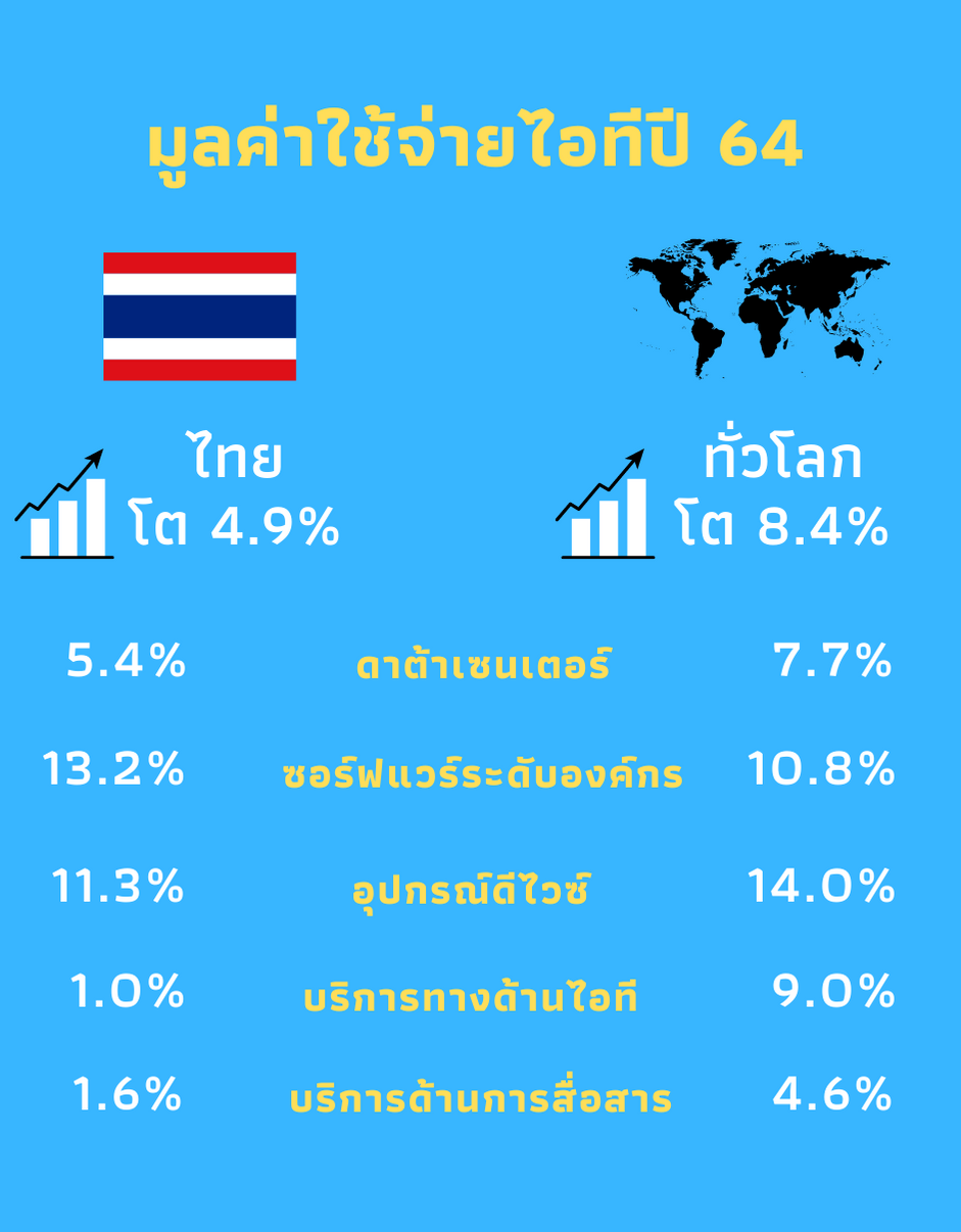 | มูลค่าการใช้จ่ายด้านไอทีทั้งหมด | 3,757,468 | -2.2 | 4,072,547 | 8.4 | 4,296,391 | 5.5 |