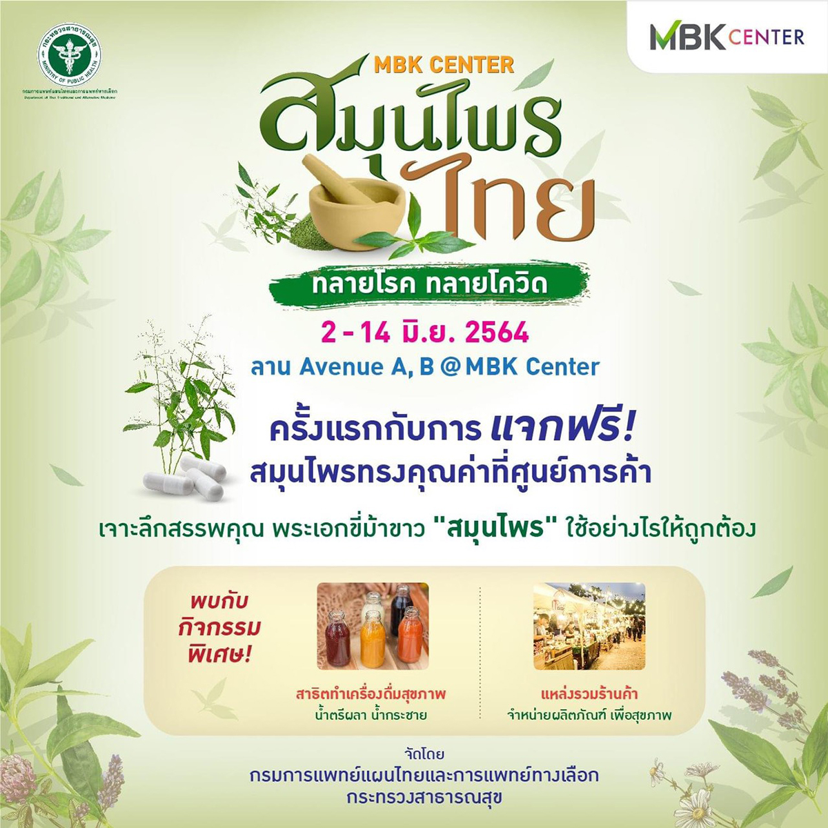 งานสมุนไพรไทย ทลายโรค ทลายโควิด มีตั้งแต่วันนี้จนถึง 14 มิถุนายน 2564 ณ ลานกิจกรรมเอ็ม บี เค อเวนิว โซน A ,B ศูนย์การค้าเอ็ม บี เค เซ็นเตอร์