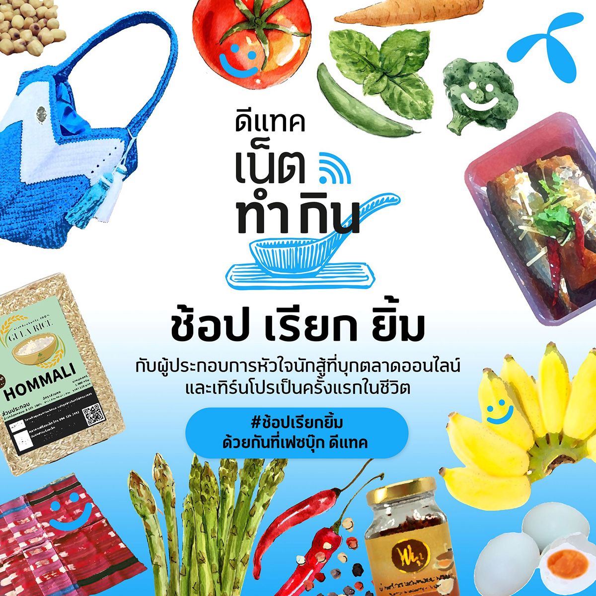 มิติหุ้น – ดีแทค เน็ตทำกิน” ชวนทุกคนมาร่วม “ช้อป เรียก ยิ้ม” ตามแบบชีวิตวิถีใหม่ อยู่ที่ไหนก็ช้อปได้ โดยดีแทคได้นำสินค้าของผู้ประกอบการ “หน้าใหม่ หัวใจนักสู้” ที่บุกตลาดออนไลน์และเทิร์นโปรเป็นครั้งแรกในชีวิต ผู้เข้าร่วมโครงการดีแทค เน็ตทำกิน ที่ได้ผ่านการฝึกฝนทักษะการตลาดออนไลน์จากทีมโค้ช ดีแทค เน็ตทำกิน ที่ช่วยเป็นพี่เลี้ยงในระยะเวลาเพียง 4 เดือน โดยกลุ่มผู้ประกอบการเลือกเปลี่ยนวิกฤตให้เป็นโอกาส เพราะเชื่อว่าท่ามกลางการแพร่ระบาดของไวรัสโควิด-19 “ออนไลน์” คือ โอกาสเดียวและโอกาสดี ที่จะทำให้พวกเขารอดท่ามกลางวิกฤตเศรษฐกิจ โดยได้คัดสรรสินค้าเด็ด ๆ ทั้งอาหารคาวหวาน เสื้อผ้า กระเป๋า และอีกมากมาย มาให้ทุกคนเลือกช้อปได้ทุกวันผ่านหน้าเพจเฟซบุ๊ก “ดีแทค” ได้แล้ววันนี้