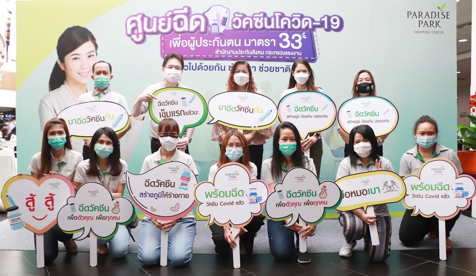 มิติหุ้น – ขานรับนโยบายภาครัฐอย่างเต็มสูบ พาราไดซ์ พาร์ค หนุนคนไทยฉีดวัคซีนโควิด-19 ทั่วถึง ผนึกกำลัง สำนักงานประกันสังคมพื้นที่ 8 และโรงพยาบาลวิภาราม เปิดพื้นที่ฉีดวัคซีนโควิด-19 ให้ผู้ประกันตนตามมาตรา 33 ที่บริษัทอยู่ในพื้นที่ บางนา ประเวศ พระโขนง และสวนหลวง เริ่มวันนี้ – 31 ก.ค.นี้ เวลา 08.00-17.00 น. ชั้น 3 โซนบิวตี้ แอนด์ เฮลธ์ (Beauty & Health)