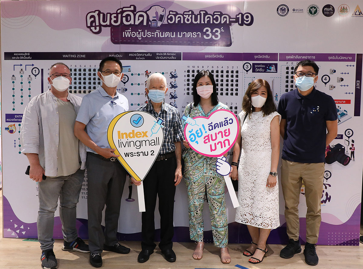 มิติหุ้น – พิศิษฐ์ ปัทมสัตยาสนธิ (ที่3จากซ้าย) ประธานกรรมการบริหาร และ กฤษชนก ปัทมสัตยาสนธิ (ที่4จากซ้าย) กรรมการผู้จัดการ บริษัท อินเด็กซ์ ลิฟวิ่งมอลล์ จำกัด (มหาชน) หรือ ILM ร่วมเป็นอีกหนึ่งภาคีผลักดันการเดินหน้าฉีดวัคซีนป้องกันโควิด19 ซึ่งถือเป็นวาระแห่งชาติตามนโยบายภาครัฐ ที่ทุกภาคส่วนต้องเร่งฉีดวัคซีนเพื่อสร้าง “ภูมิคุ้มกันหมู่” (Herd Immunity) ในกลุ่มประชากรของประเทศ เพื่อควบคุมและยับยั้งการแพร่ระบาดของโรคโควิด 19 ที่ยังรุนแรงอย่างต่อเนื่อง และบริษัทฯ สานต่อพันธกิจอันสำคัญนี้โดยให้ความร่วมมือกับ สำนักงานประกันสังคม (สปส.) เขตกรุงเทพมหานคร พื้นที่ 7 จัดพื้นที่ อินเด็กซ์ ลิฟวิ่งมอลล์ สาขาพระราม 2 (ถนนพระราม 2) และ สาขาบางนา (ถนนบางนา-ตราด) อำนวยความสะดวกในการฉีดวัคซีนให้แก่ประชาชน สำหรับผู้ประกันตนในระบบประกันสังคมตามมาตรา 33 ซึ่งสามารถรองรับประชาชนที่เข้ารับวัคซีนได้สาขาละ 1,000 คน/วัน โดยเริ่มให้บริการตั้งแต่วันที่ 7 มิถุนายน 2564 เป็นต้นไป มีแพทย์และเจ้าหน้าที่จากโรงพยาบาลบางปะกอก 8 ควบคุมดูแลการฉีดวัคซีน และได้ยึดหลักแนวทางปฏิบัติการเว้นระยะห่าง (Social Distancing) รวมถึงมาตรการความปลอดภัยต่างๆ ตามมาตรการของกรมควบคุมโรค กระทรวงสาธารณสุขอย่างเคร่งครัด เพื่อป้องกันการแพร่ระบาดของโรค ทั้งนี้มีเป้าหมายให้ประชาชนได้รับวัคซีนอย่างรวดเร็ว ทั่วถึง และยับยั้งการแพร่ระบาดของเชื้อโควิด19 อันจะส่งผลให้ประเทศกลับเข้าสู่ภาวะปกติและผลักดันเศรษฐกิจให้ขับเคลื่อนได้โดยเร็วที่สุด