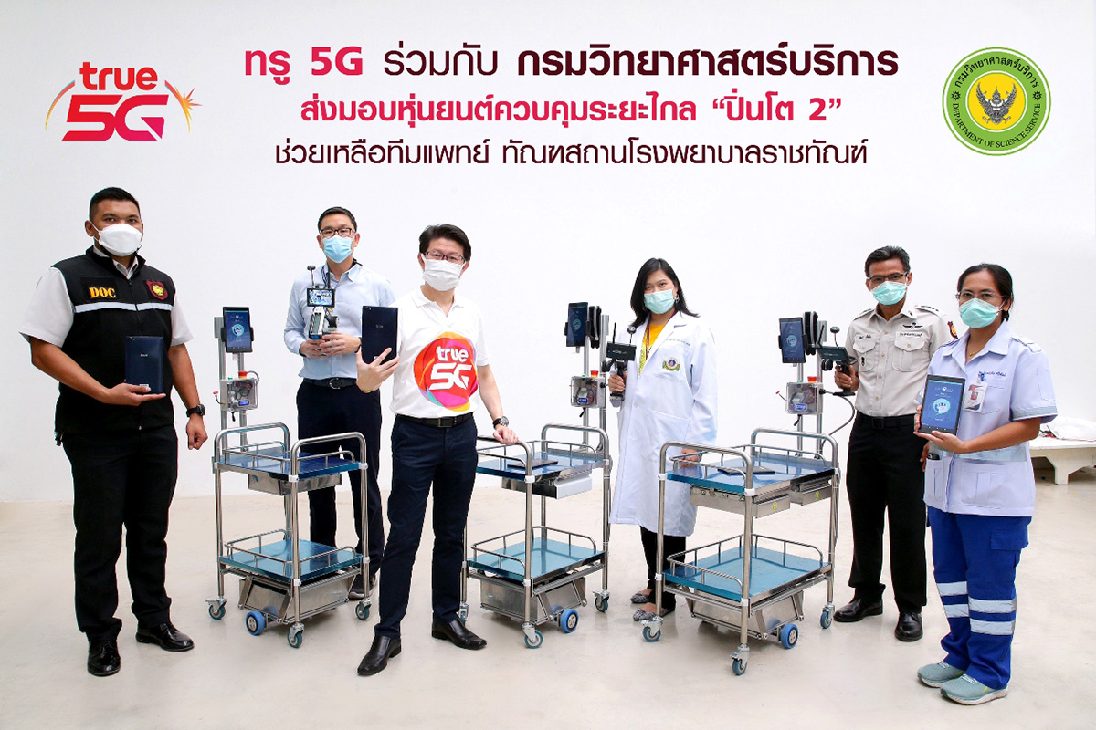 มิติหุ้น – จากรายงานการแพร่ระบาดของโควิด-19 อย่างหนักภายในเรือนจําและ ทัณฑสถานต่างๆ ทั่วประเทศ ที่ยังพบยอดผู้ติดเชื้อพุ่งสูงขึ้นทุกวัน ซึ่งทุกภาคส่วนยังคงต้องร่วมแรงร่วมใจกันเพื่อฟันฝ่าวิกฤตนี้ไปให้ได้ ทรู 5G พร้อมเร่งนำศักยภาพเครือข่ายอัจฉริยะ และเทคโนโลยี สื่อสารดิจิทัลมาช่วยสนับสนุนภารกิจ และอำนวยความสะดวกให้กับบุคลากรทางการแพทย์ โดย นายวิฑูรย์ เจียมศิริกาญจน์ (ที่ 3 จากซ้าย) รองผู้อำนวยการและคณะทำงาน 5G บมจ. ทรู คอร์ปอเรชั่น ร่วมกับ กรมวิทยาศาสตร์บริการ กระทรวงการอุดมศึกษา วิทยาศาสตร์ วิจัยและนวัตกรรม โดย ดร.ปาษาณ กุลวานิช (ที่ 2 จากซ้าย) นักวิทยาศาสตร์ชำนาญการ ส่งมอบหุ่นยนต์ควบคุมระยะไกล “ปิ่นโต 2″ จำนวน 3 ตัว ให้แก่ ทัณฑสถานโรงพยาบาลราชทัณฑ์ โดย แพทย์หญิง รพีพรรณ รัตนวงศ์นรา มอร์ด (ที่ 3 จากขวา) อาจารย์ประจำสาขาวิชาโรคติดเชื้อคณะแพทยศาสตร์โรงพยาบาลรามาธิบดี มหาวิทยาลัยมหิดล เพื่อใช้ขนส่งยาและอุปกรณ์ทางการแพทย์เข้าไปในพื้นที่วอร์ดโควิด ภายใน ทัณฑสถานโรงพยาบาลราชทัณฑ์ เรือนจำกลางบางขวาง และเรือนจำจังหวัดนนทบุรี รวมทั้งติดตั้งระบบสื่อสารทางไกล ผ่าน Tablet True Smart Tab พร้อมซิม ทรูฟรีนาน 12 เดือน เพื่อให้แพทย์ พยาบาลได้ใช้สื่อสารกับผู้ป่วย เพิ่มประสิทธิภาพในการทำงาน ตลอดจนลดการเสี่ยงติดเชื้อของบุคลากรทางแพทย์ เนื่องจากต้องใส่ชุด PPE เข้าไปในเรือนจำทุกรอบ การใช้หุ่นยนต์จะทำให้ทดแทนการทำงานของหมอต้องใส่ชุดเข้าไปหาคนไข้ได้ 10 – 15 ชุดต่อวัน ราคาทั้งชุด