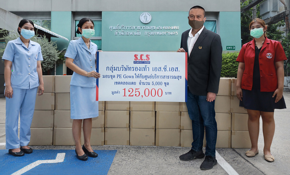 มิติหุ้น – กลุ่มบริษัทรองเท้า เอส.ซี.เอส. นำโดย วิษณุ วงศ์วีระนนท์ชัย รองกรรมการผู้จัดการ ร่วมปันน้ำใจ มอบเสื้อกาวน์ป้องกันการติดเชื้