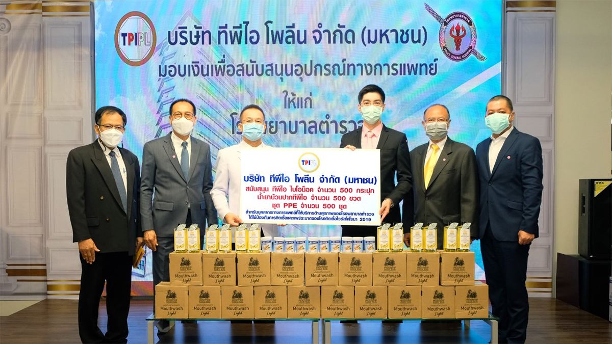 มิติหุ้น – นายภัคพล เลี่ยวไพรัตน์ (ที่ 3 จากขวา) รองกรรมการผู้จัดการใหญ่สายบัญชีและการเงิน บริษัท ทีพีไอ โพลีน เพาเวอร์ จำกัด (มหาชน) หรือ TPIPP ร่วมกับ พลตำรวจเอก สุพร พันธุ์เสือ (ที่ 2 จากขวา) ที่ปรึกษาบริษัทฯ, นายไวพจน์ คดบัว (ที่ 2 จากซ้าย) ผู้ช่วยรองผู้จัดการใหญ่ ฝ่ายกฎหมาย เป็นตัวแทน บริษัท ทีพีไอ โพลีน จำกัด (มหาชน) หรือ TPIPL มอบผลิตภัณฑ์ทีพีไอ ไบโอน็อค จำนวน 500 กระปุก น้ำยาบ้วนปากทีพีไอ จำนวน 500 ขวด และชุด PPE จำนวน 500 ชุด ให้กับบุคลากรทางการแพทย์ที่ให้บริการด้านสุขภาพของโรงพยาบาลตำรวจเพื่อใช้ป้องกันการติดเชื้อและแพร่ระบาดของโรคในระหว่างปฏิบัติงาน โดยมี พลตำรวจตรี บุณยรัสน์ พุกกะเวส (ที่ 3 จากซ้าย) นายแพทย์ (สบ 7) โรงพยาบาลตำรวจ ให้เกียรติเป็นตัวแทนรับมอบ ทั้งนี้ TPIPP ขอร่วมเป็นส่วนหนึ่งในการสร้างขวัญและกำลังใจแก่บุคลากรทางการแพทย์ที่กำลังปฏิบัติงานอย่างเต็มกำลังความสามารถอยู่ในขณะนี้ และขอร่วมฝ่าฟันวิกฤตโควิด –19 นี้ ไปด้วยกัน