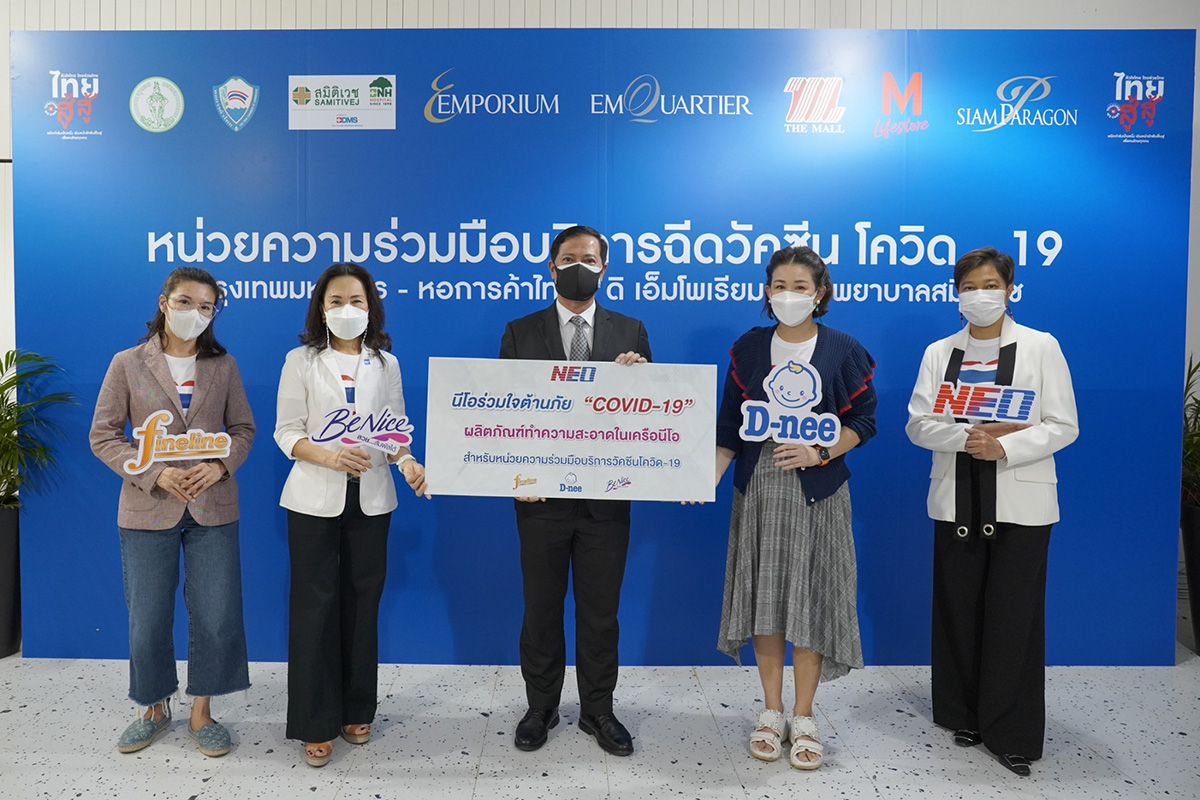 มิติหุ้น – บริษัท นีโอ คอร์ปอเรท จำกัด บริษัทชั้นนำด้านสินค้าอุปโภคสัญชาติไทยคุณภาพระดับมาตรฐานสากล เดินหน้าสนับสนุนการส่งเสริมสุขอนามัยที่ดีอย่างต่อเนื่อง โดยร่วมเป็นส่วนหนึ่งในการรณรงค์ให้คนไทยฉีควัคซีน เพื่อลดโอกาสการติดเชื้อ ความรุนแรงของโรค และความเสี่ยงจากการเสียชีวิตอันเป็นสาเหตุมาจากโควิด-19 พร้อมส่งกำลังใจและมอบผลิตภัณฑ์ดูแลความสะอาดของแบรนด์ในเครือบริษัท นีโอ คอร์ปอเรท ให้กับผู้ที่ลงทะเบียนรับบริการฉีดวัคซีนยังหน่วยความร่วมมือบริการฉีดวัคซีน โควิด-19 ดิ เอ็มโพเรียม รวมจำนวน 25,252 ชิ้น มูลค่ากว่า 300,000 บาท โดยมี อรธิรา ภาคสุวรรณ (ที่ 2 จากขวา) กรรมการผู้จัดการศูนย์การค้า ดิเอ็มโพเรียม และ ดิ เอ็มควอเทียร์, สุธาวดี ศิริธนชัย (ที่ 2 จากซ้าย) รองกรรมการผู้จัดการศูนย์การค้า ดิ เอ็มโพเรียม และ ดิ เอ็มควอเทียร์, ไพพรรณ หลักแหลม (ขวาสุด) ผู้จัดการใหญ่บริหารศูนย์การค้า ดิ เอ็มโพเรียม และ ดิ เอ็มควอเทียร์ และ ภพัชร์ศา พานิชย์อำนวย (ซ้ายสุด) ผู้ช่วยผู้จัดการทั่วไป Strategic Partnership & Alliances รับมอบผลิตภัณฑ์จากผู้แทนผู้บริหาร นีโอ ณ ศูนย์การค้า ดิ เอ็มโพเรียม เมื่อวันก่อน