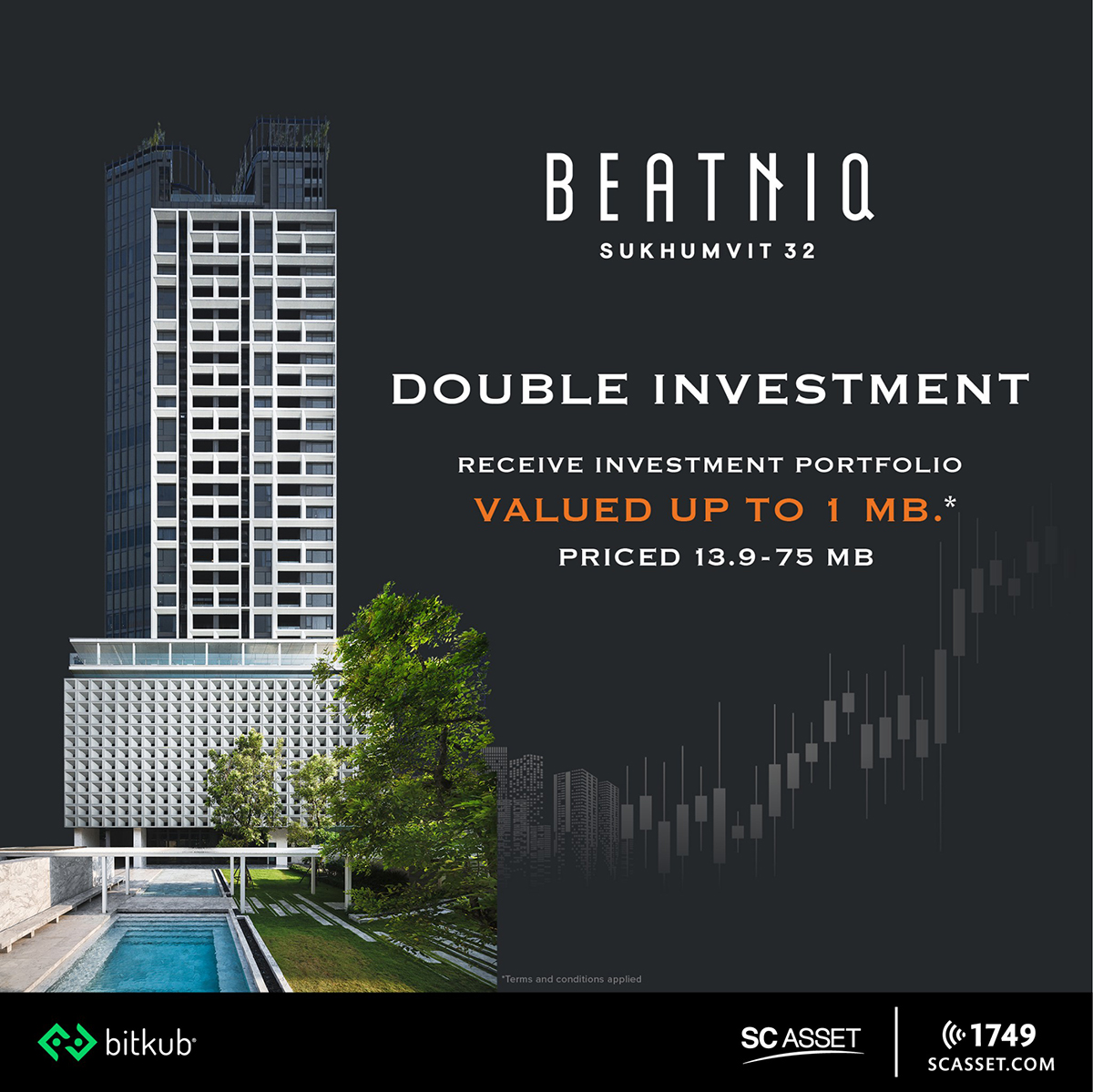 กับโครงการ BEATNIQ Sukhumvit 32 (บีทนิค สุขุมวิท 32) ราคาเริ่มต้น 13.9-75 ล้านบาท* คอนโดมิเนียม ทำเลใจกลางสุขุมวิท ห่างจาก BTS ทองหล่อ เพียง 250 เมตร ใกล้แหล่งไลฟ์สไตล์อย่างทองหล่อและพร้อมพงษ์ โดดเด่นด้วยดีไซน์ที่ได้รับแรงบันดาลใจจากยุค Mid-Century Modern พิเศษด้วยบริการ Concierge Service มอบความสะดวกสบายและยกระดับการใช้ชีวิตของผู้อยู่อาศัย