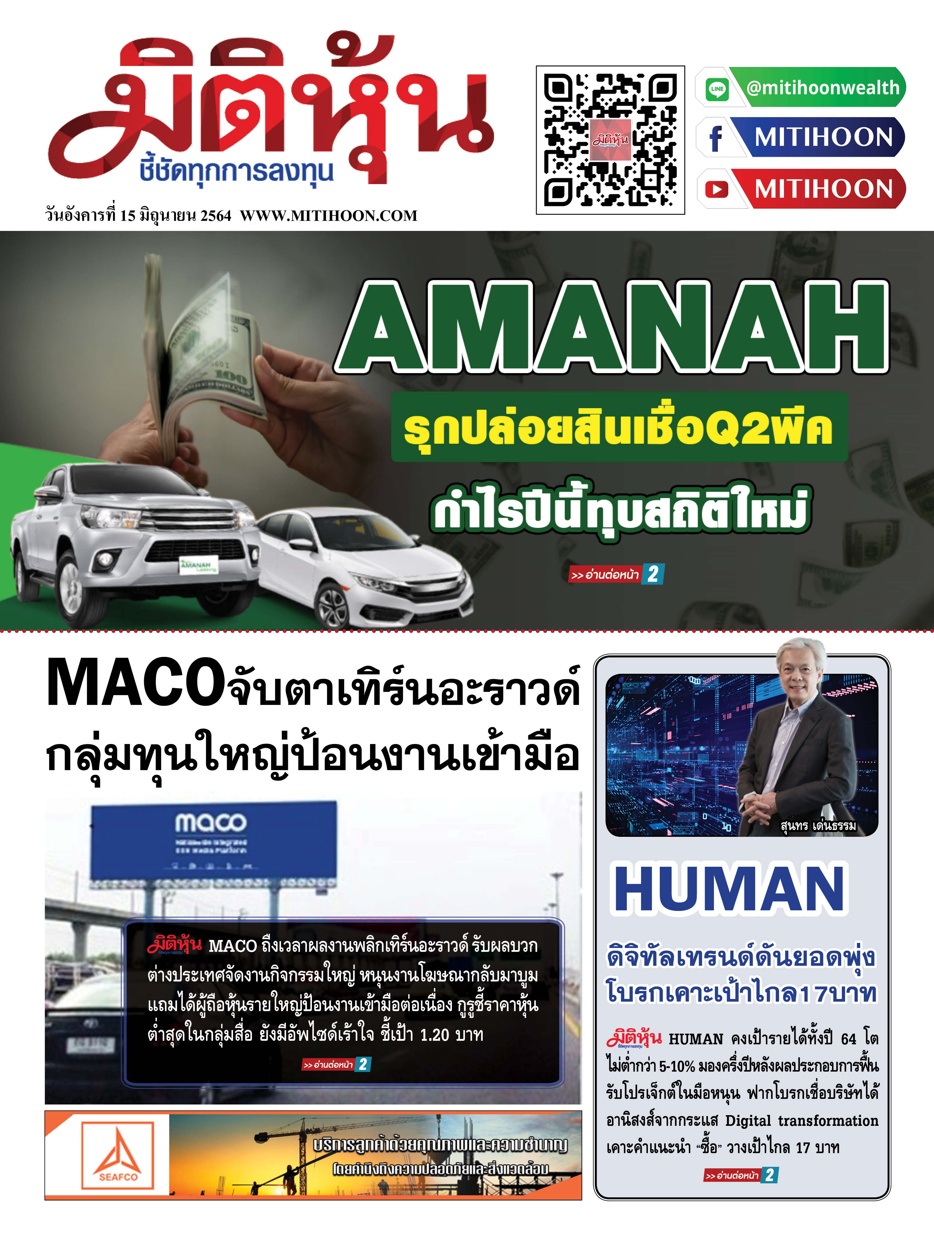 นสพ. “มิติหุ้น” ชี้ชัดทุกการลงทุน ฉบับวันที่ 15 มิ.ย. 64