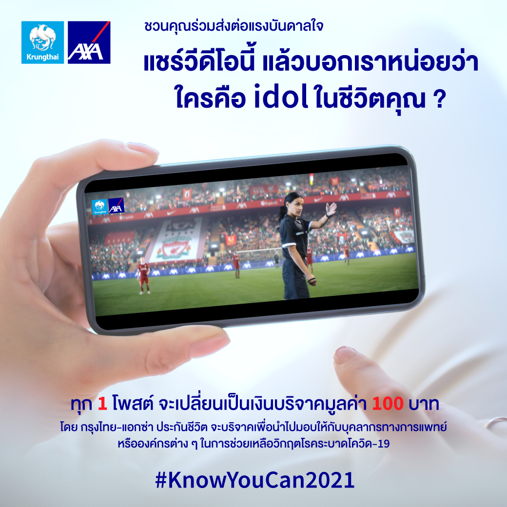 โดยทุก 1 โพสต์ จะเปลี่ยนเป็นเงินบริจาคมูลค่า 100 บาท จาก กรุงไทย-แอกซ่า ประกันชีวิต เพื่อนำไปมอบให้กับบุ