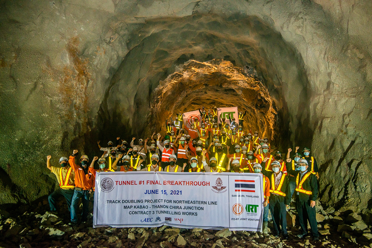 มิติหุ้น – นายชวลิต ถนอมถิ่น ประธานเจ้าหน้าที่บริหาร บริษัท ไร้ท์ทันเน็ลลิ่ง จำกัด (มหาชน) หรือ RT ผู้เชี่ยวชาญพิเศษด้านวิศวกรรมโยธาและธรณีเทคนิค เปิดเผยว่า บริษัทเข้าดำเนินงานก่อสร้างในโครงการรถไฟทางคู่สายตะวันออกเฉียงเหนือ ช่วงมาบกะเบา-ชุมทางถนนจิระ สัญญาที่ 3 โดยส่วนการสร้างอุโมงค์รถไฟมาบกะเบา ระยะทาง 5.2 กม. ขณะนี้ดำเนินงานเจาะทะลุ (Breakthrough) บริเวณสถานีรถไฟมาบกะเบาให้เชื่อมถึงกันทั้งสองด้านเป็นที่เรียบร้อยแล้ว ซึ่งถือเป็นอุโมงค์รถไฟทางคู่ที่ยาวที่สุดในประเทศไทย ระยะทาง 5.2 กม. และจะดำเนินงานคอนกรีตโครงสร้างอุโมงค์รถไฟ ทั้งภายในและรอบนอกอุโมงค์ในลำดับต่อไป