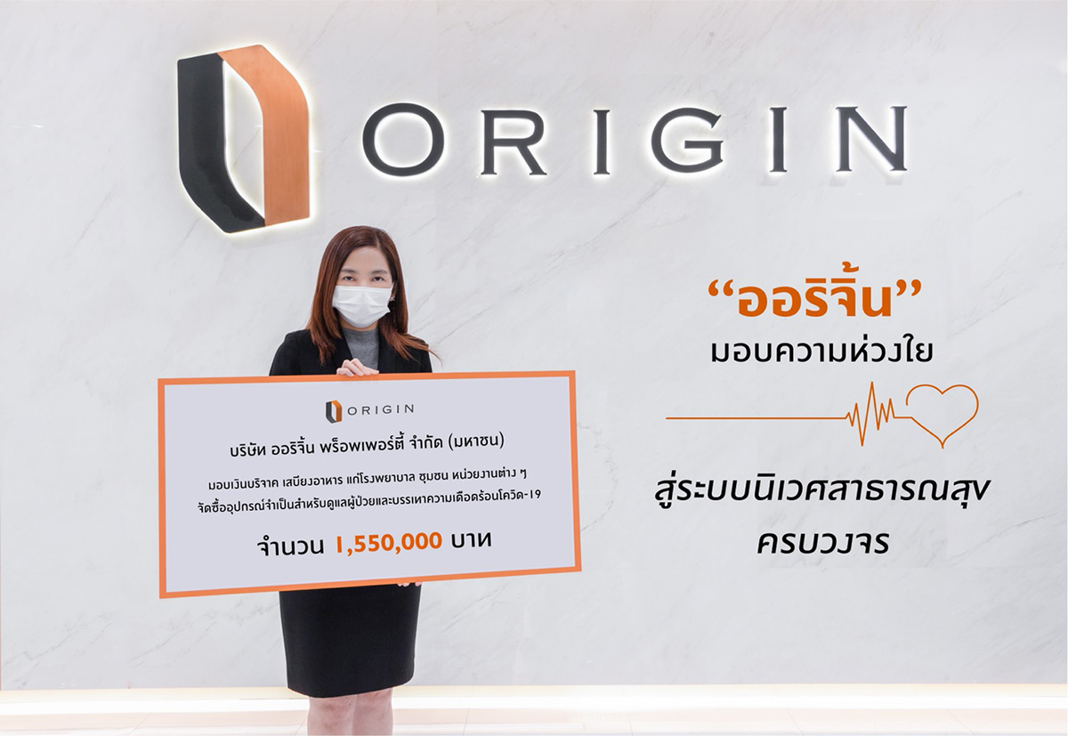 ล่าสุด บริษัท ออริจิ้น พร็อพเพอร์ตี้ จำกัด (มหาชน) และบริษัทในเครือ ได้ร่วมบริจาคเงินจำนวนทั้งสิ้น 1,000,000 บาท เพื่อจัดซื้อเครื่องมือแพทย์และอุปกรณ์จำเป็นสำหรับใช้ดูแลรักษาผู้ป่วย COVID-19 ให้แก่ 10 โรงพยาบาลทั่วประเทศ ได้แก่ โรงพยาบาลจุฬาลงกรณ์ สภากาชาดไทย โรงพยาบาลวชิรพยาบาล โรงพยาบาลสนามธรรมศาสตร์ โรงพยาบาลกลาง โรงพยาบาลภูมิพลอดุลยเดช โรงพยาบาลสมุทรปราการ โรงพยาบาลนครพิงค์ จ.เชียงใหม่ โรงพยาบาลระยอง โรงพยาบาลขอนแก่น และ โรงพยาบาลสิชล จ.นครศรีธรรมราช พร้อมกันนี้ยังได้มอบเงินจำนวน 100,000 บาท ให้แก่ โรงพยาบาลสิรินธร เพื่อซื้อเครื่องช่วยหายใจและอุปกรณ์ทางการแพทย์ ในการรักษาผู้ป่วยวิกฤติจาก COVID-19